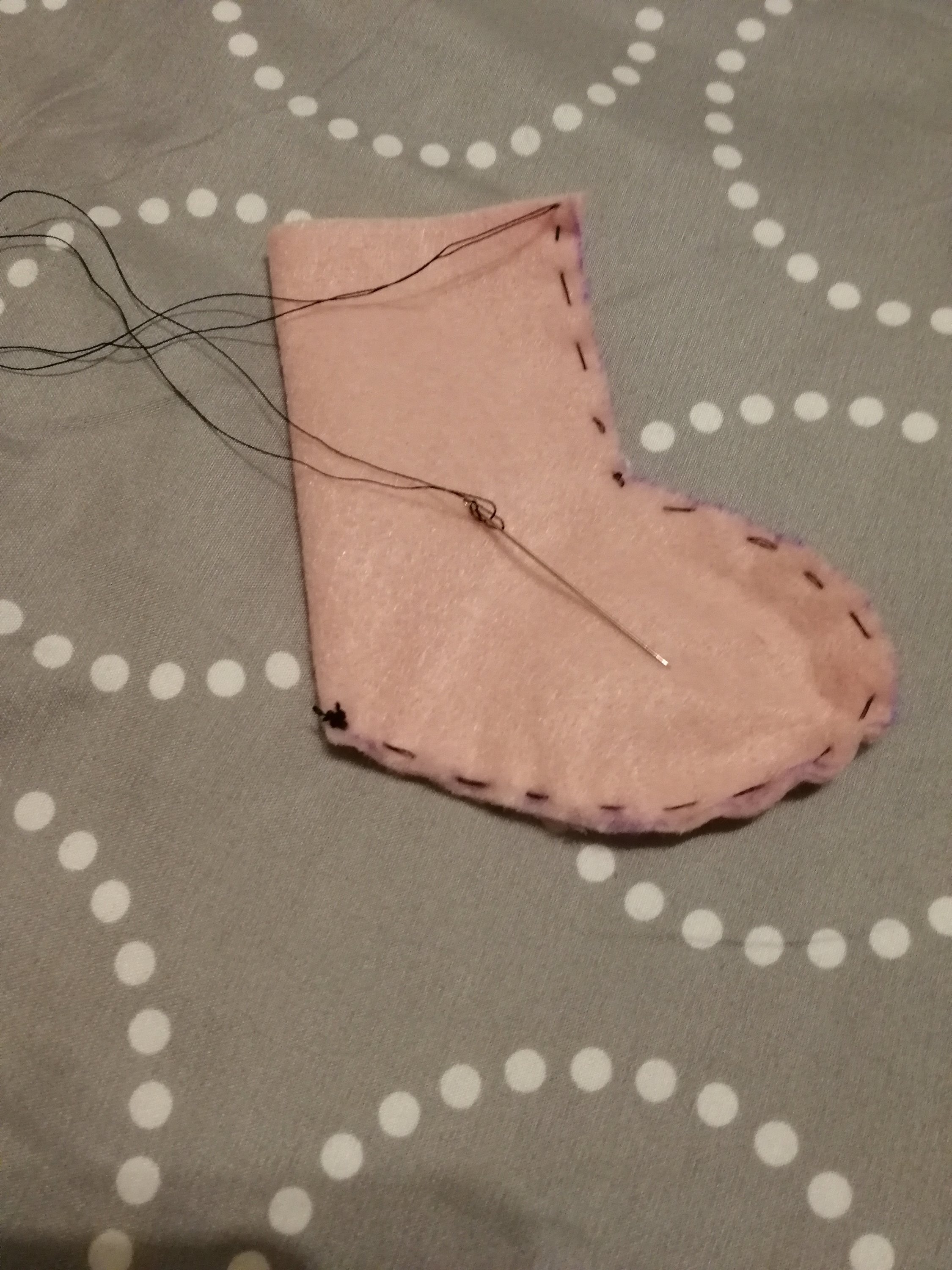 - Découpe les chaussettes et coud (ou colle) les extrémités pour la fermer. En veillant à laisser le haut ouvert.