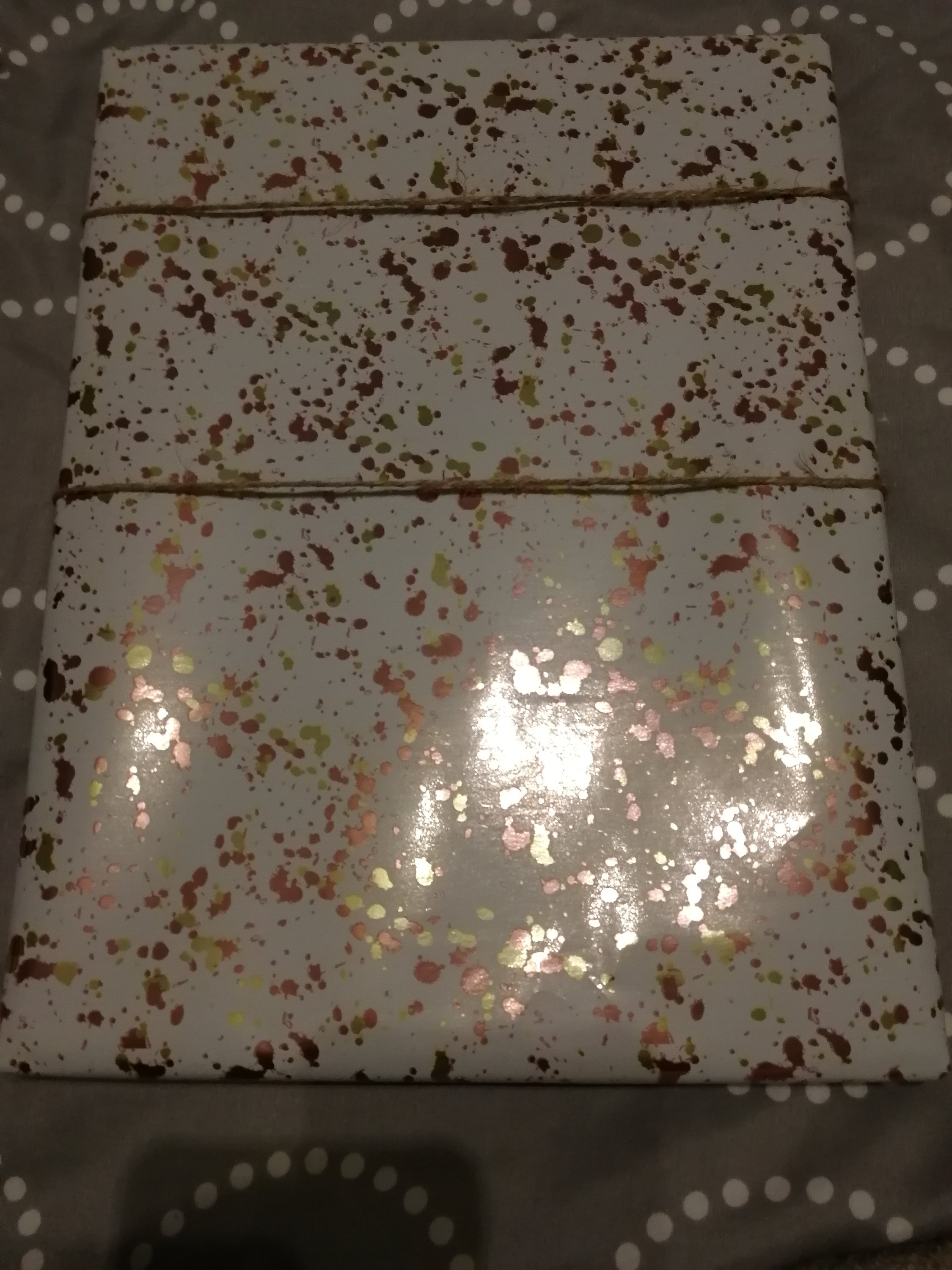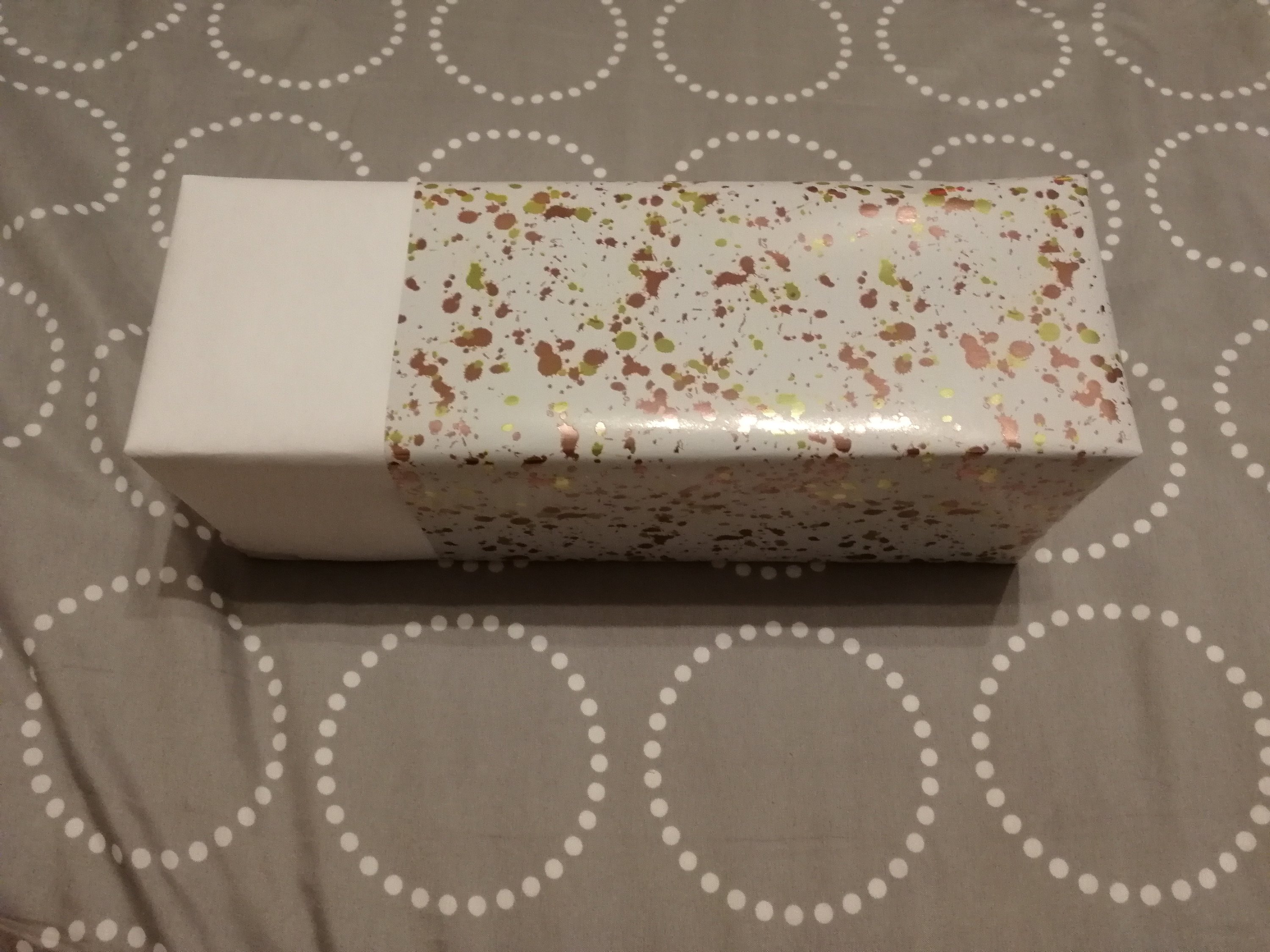 - Applique ton premier papier cadeau. (ici une simple feuille blanche).