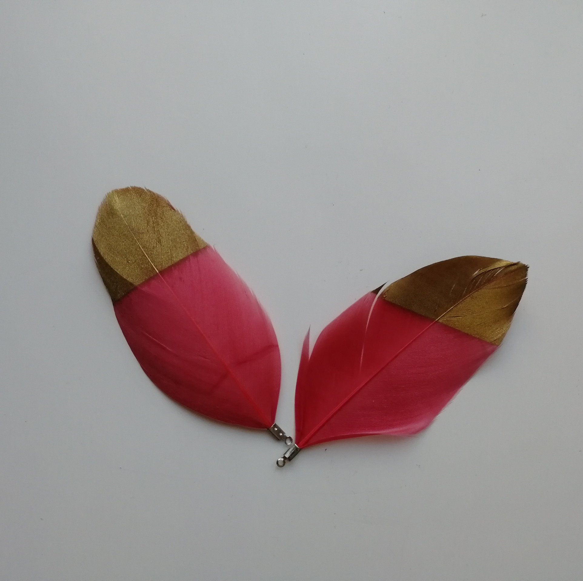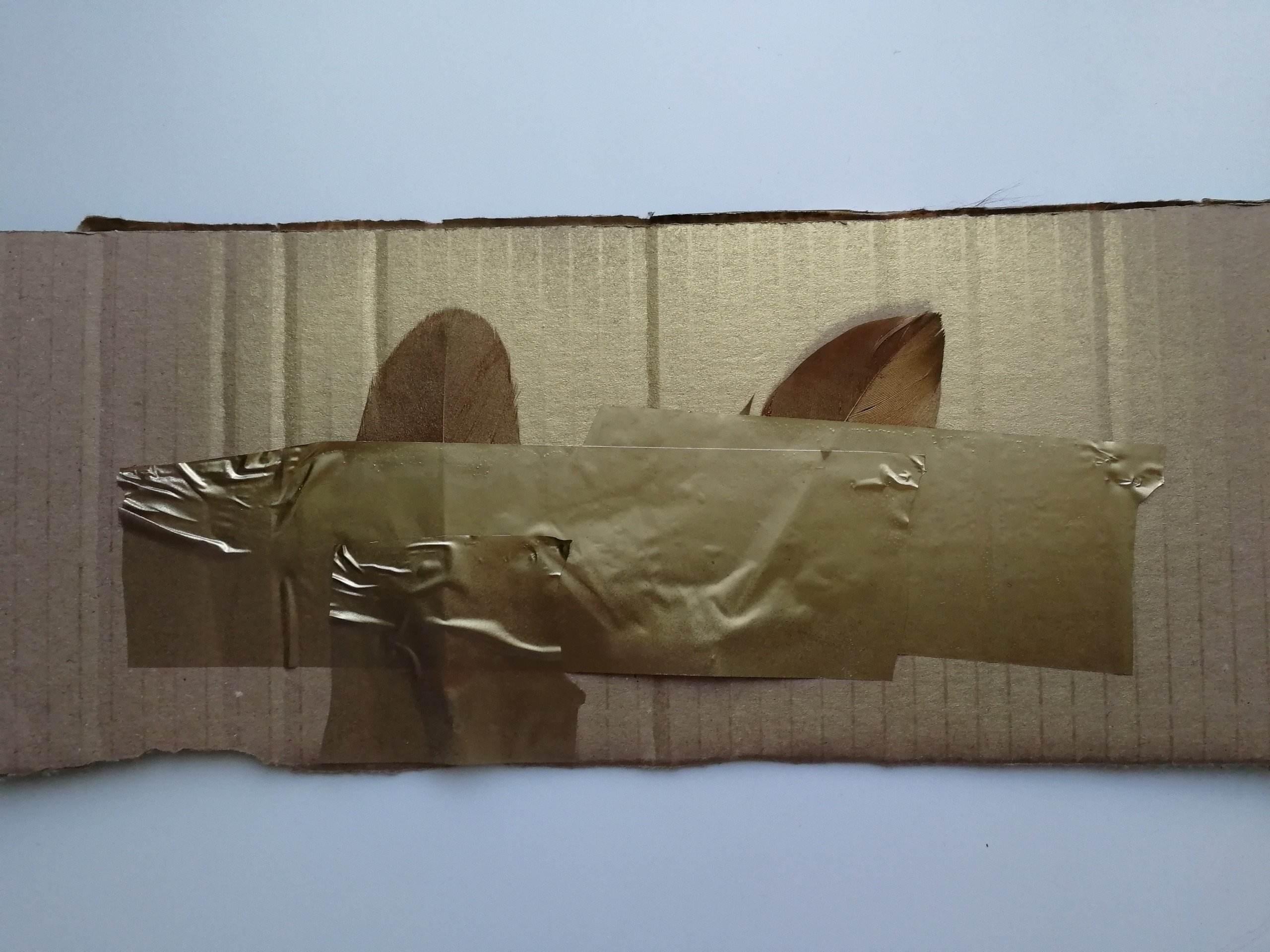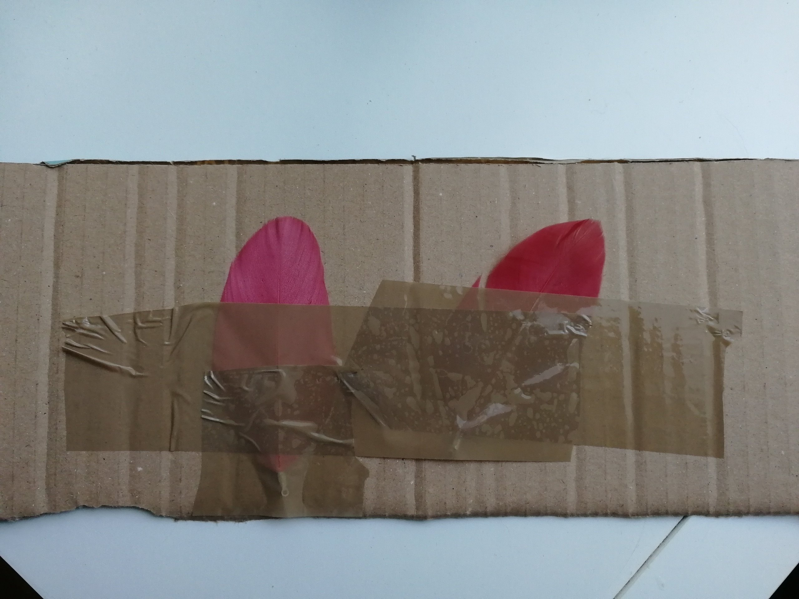 - Scotch tes plumes sur un morceau de carton, en veillent à protéger la partie que tu ne souhaites pas peindre.