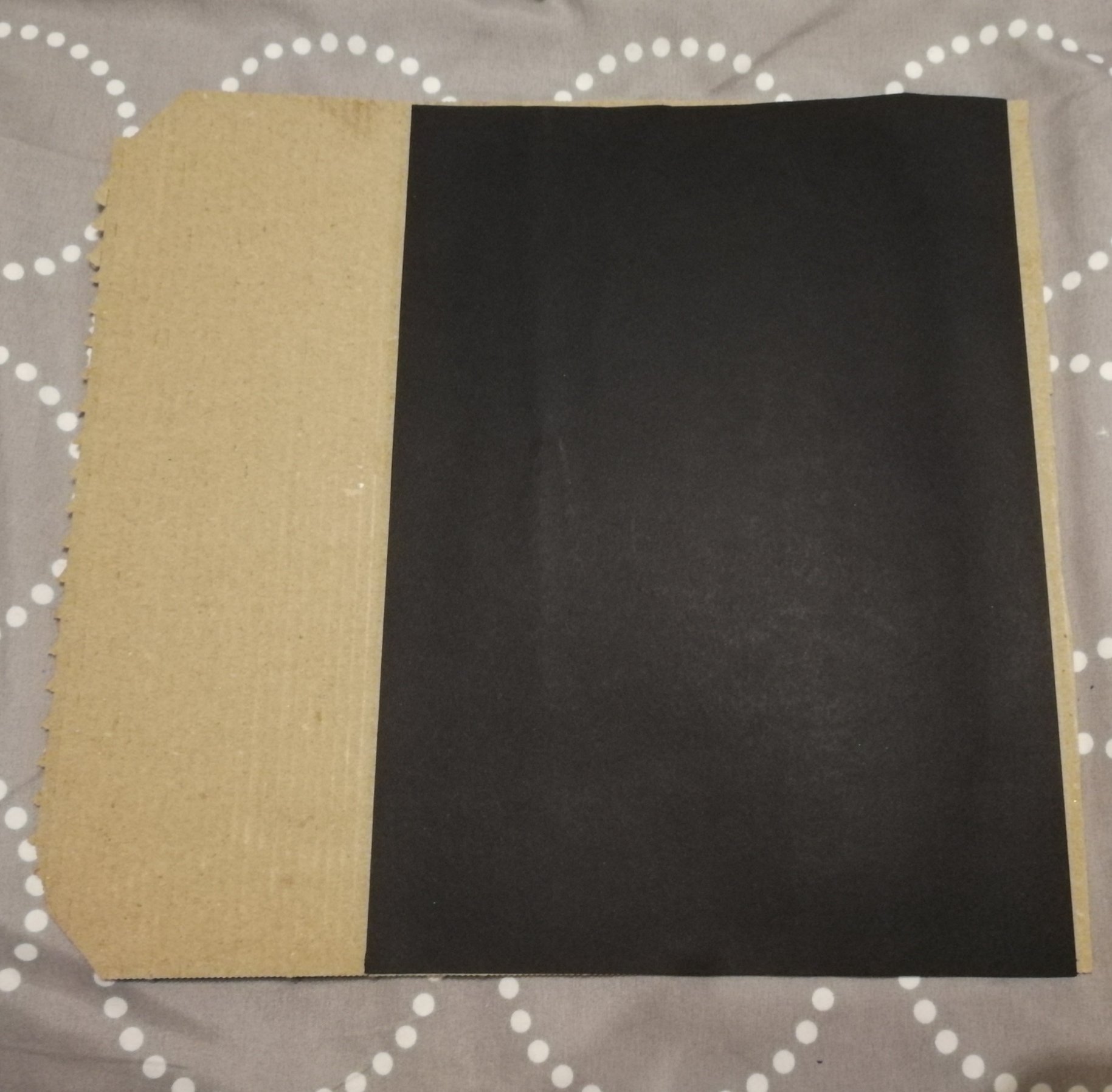- Colle un morceau de papier noir sur un morceau de carton (ou peint-le).
