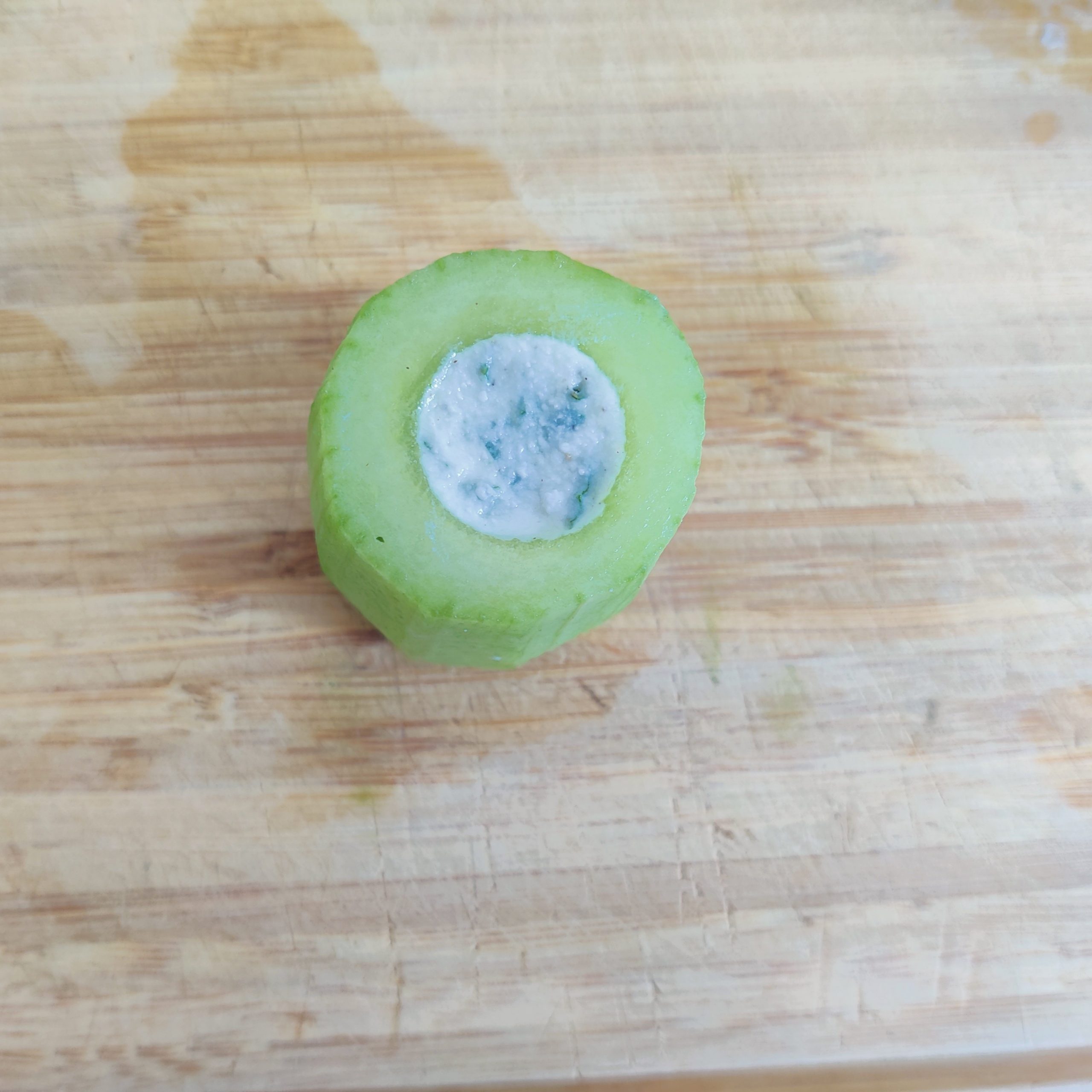- Garnis chaque tronçon de concombre à l’aide d’une cuillère à café.