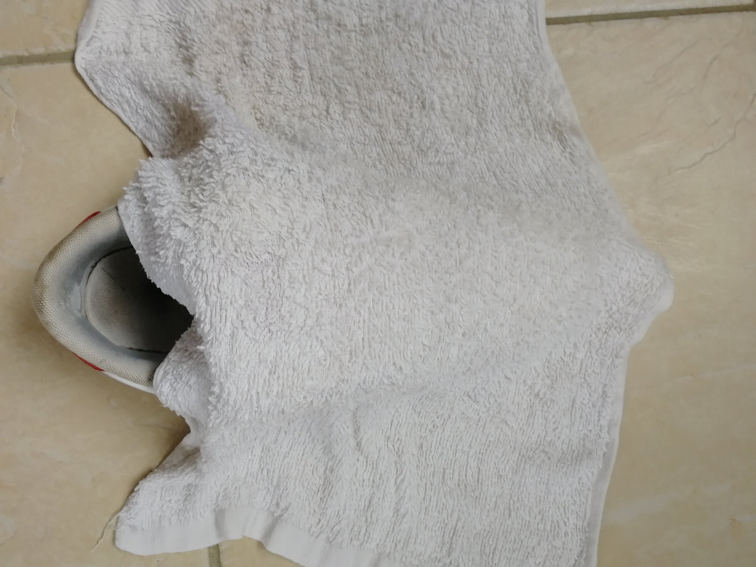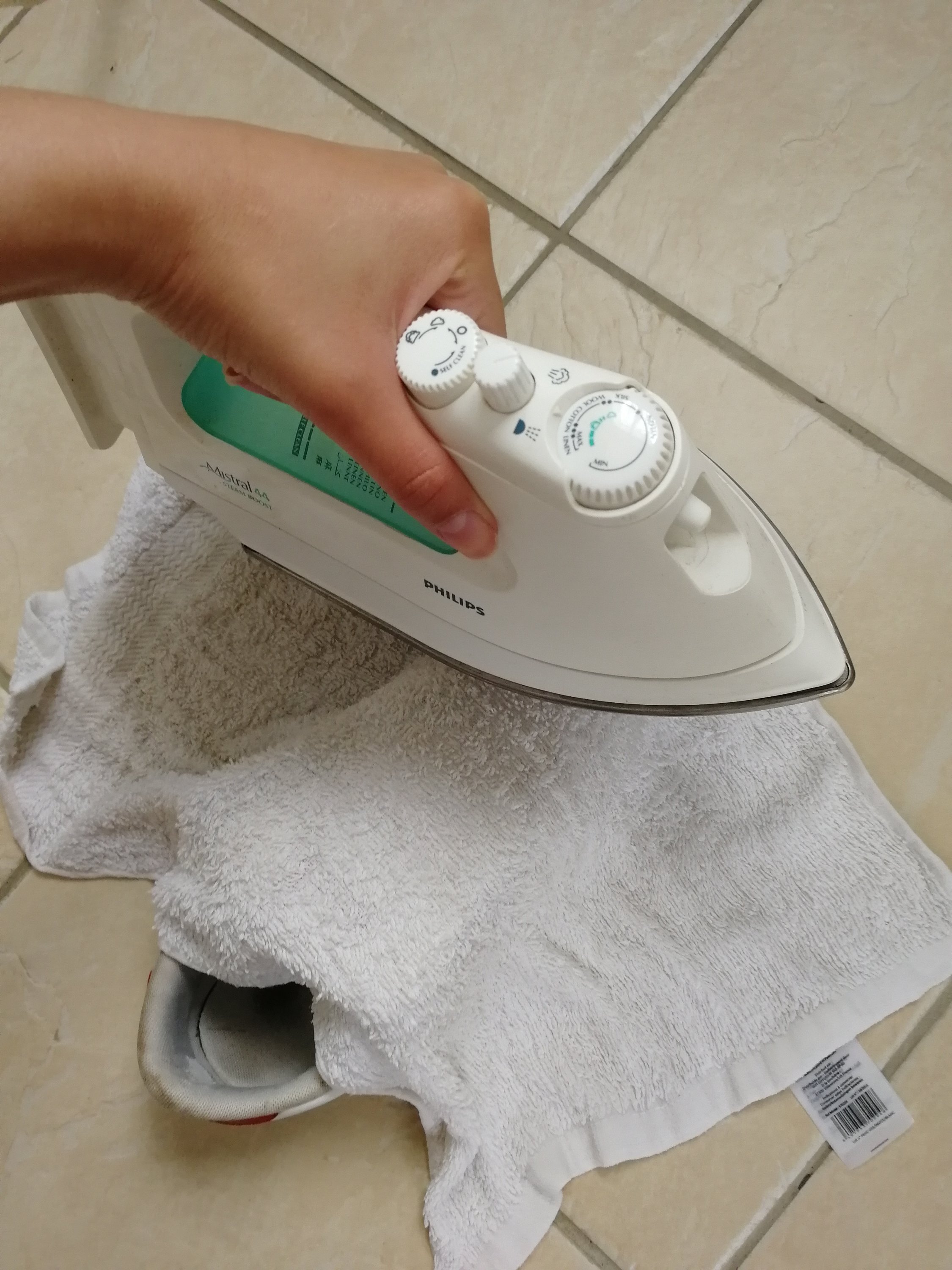 - Place une serviette mouillée sur le dessus de ta chaussure afin de la protéger.