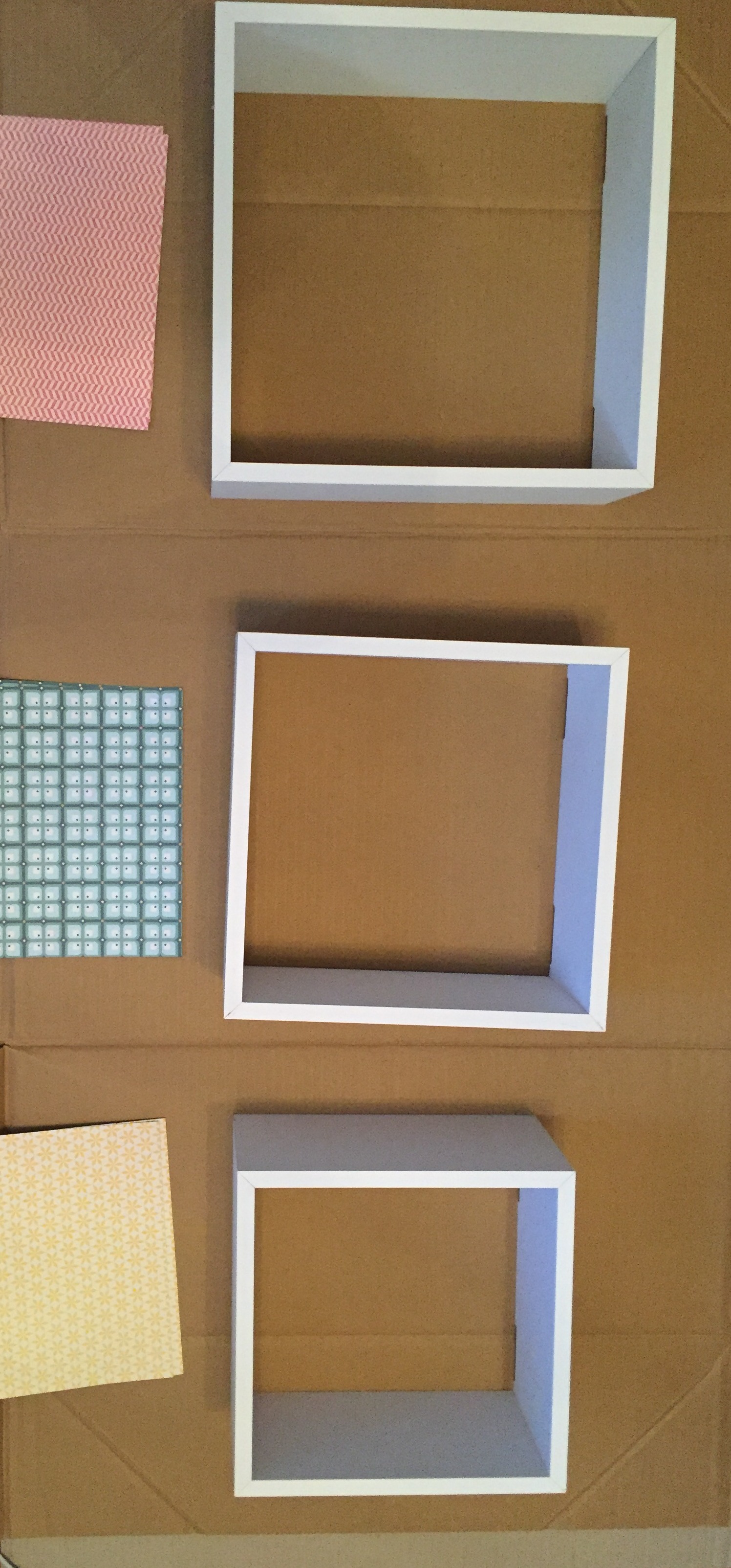 - Les étagères cubes que j’ai utilisées viennent de Leroy Merlin