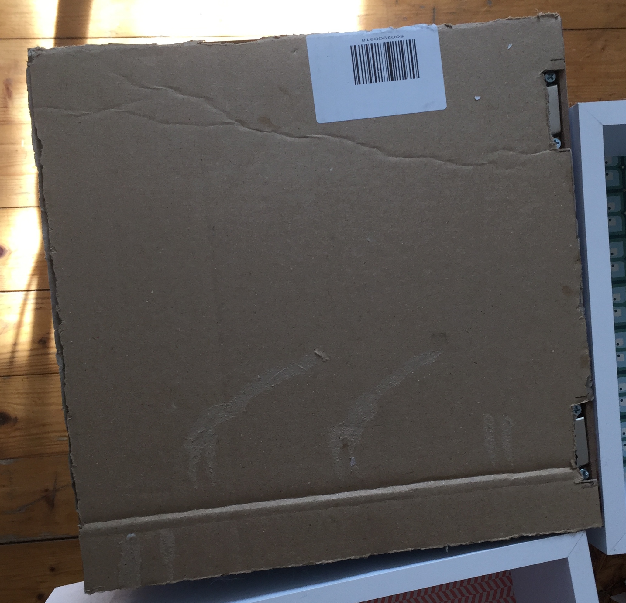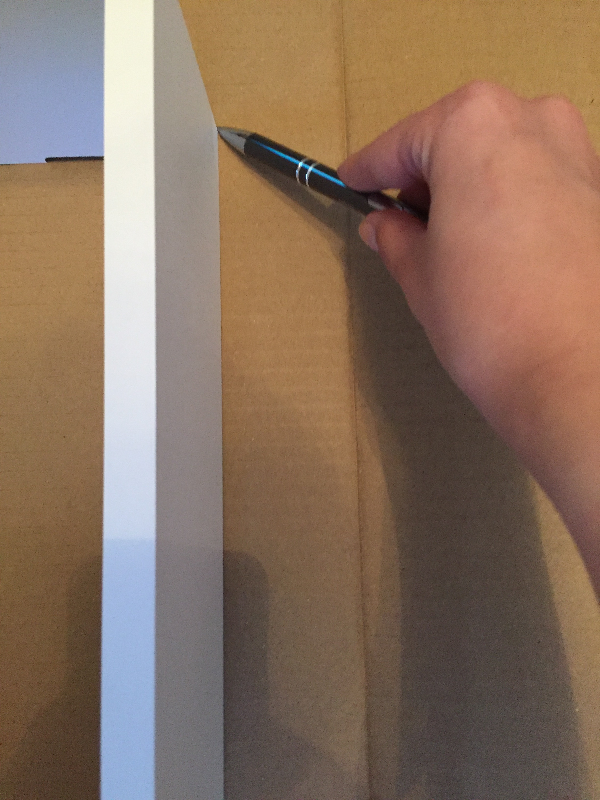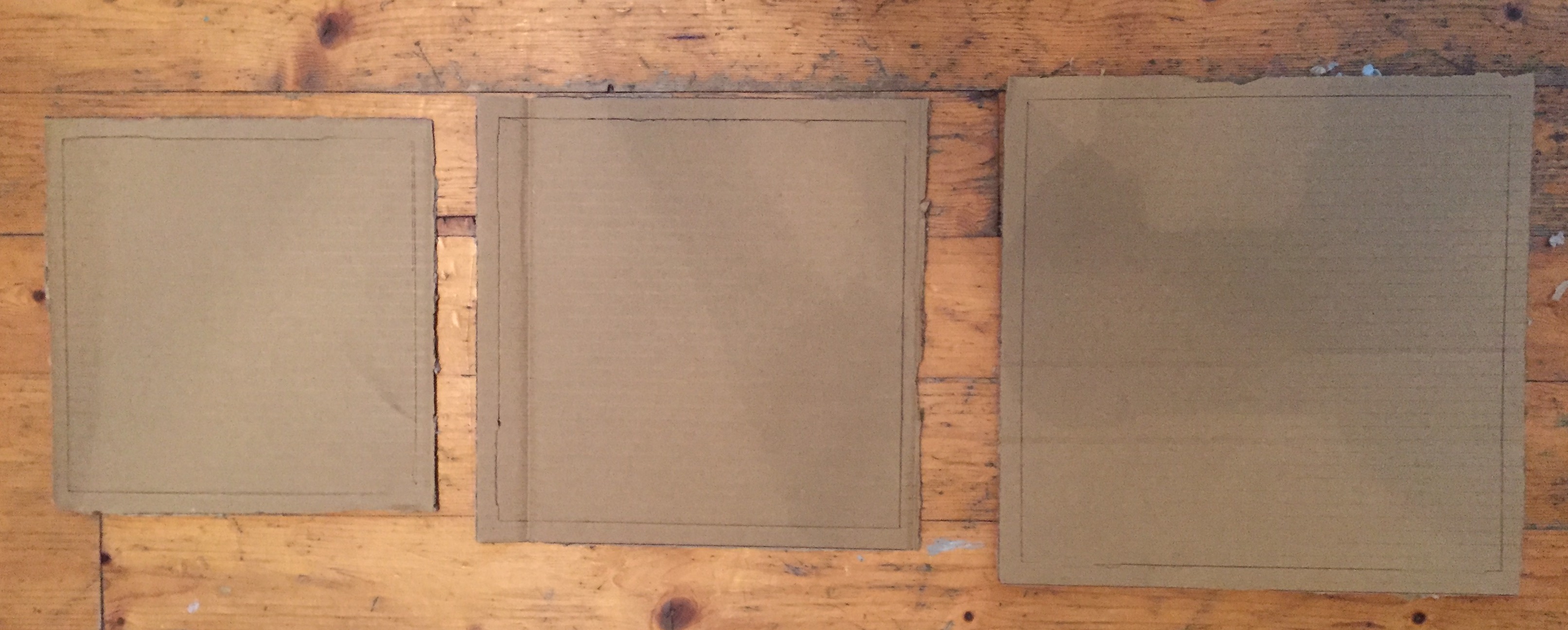 - Une fois les feuilles collées, positionne les cartons sur l’arrière des cubes afin de prendre les mesures des accroches.