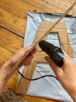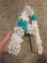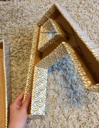 - Applique et scotche ton papier sur tes lettres, en prenant soin de recouvrir les côtés et sans oublier de déborder à l’intérieur et à l’extérieur.