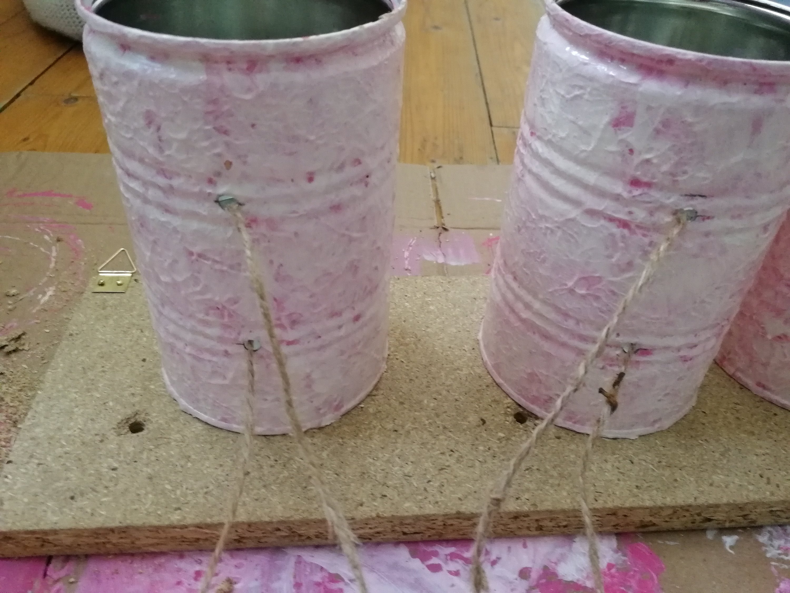 Passe tes ficelles dans chaque pots.