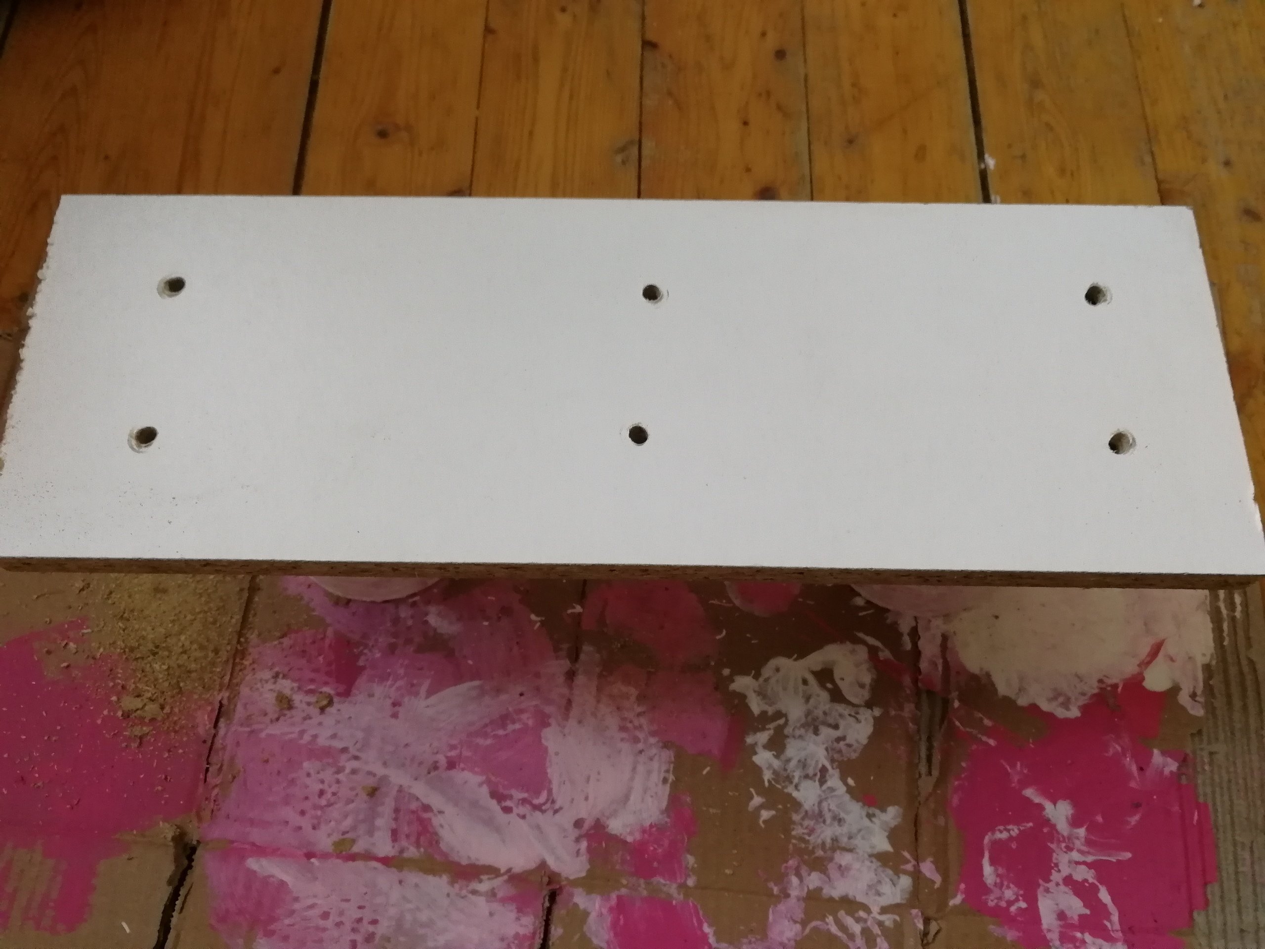 Reporte les mesures sur ta planche et perse-la. (Positionne ta planche sur tes pots pour la percer facilement).