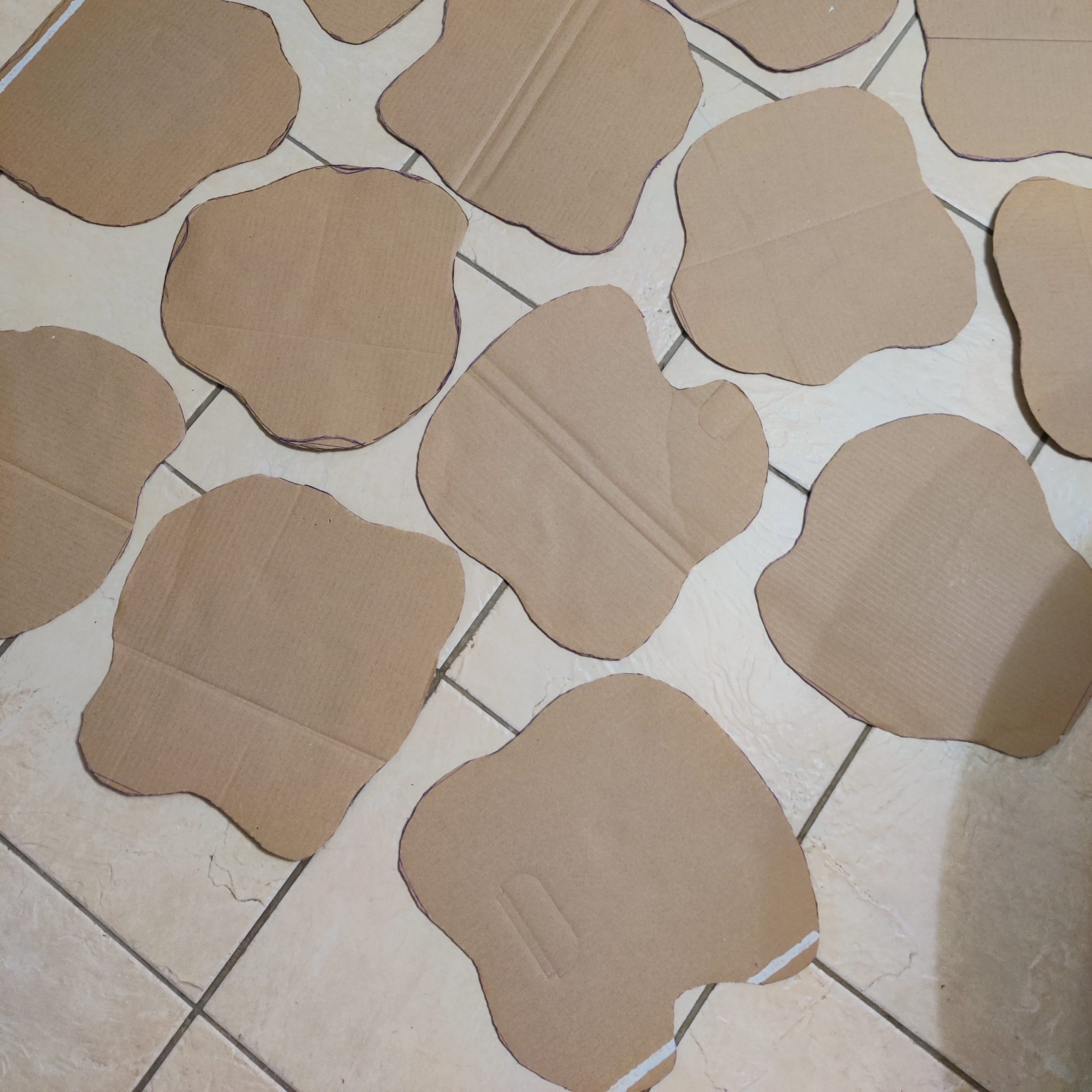 - Trace des carré de 30 cm de côté. (j’ai pu en faire 7 sur chaque cartons, les carrés servent aussi à avoir des pas japonais de même volume)