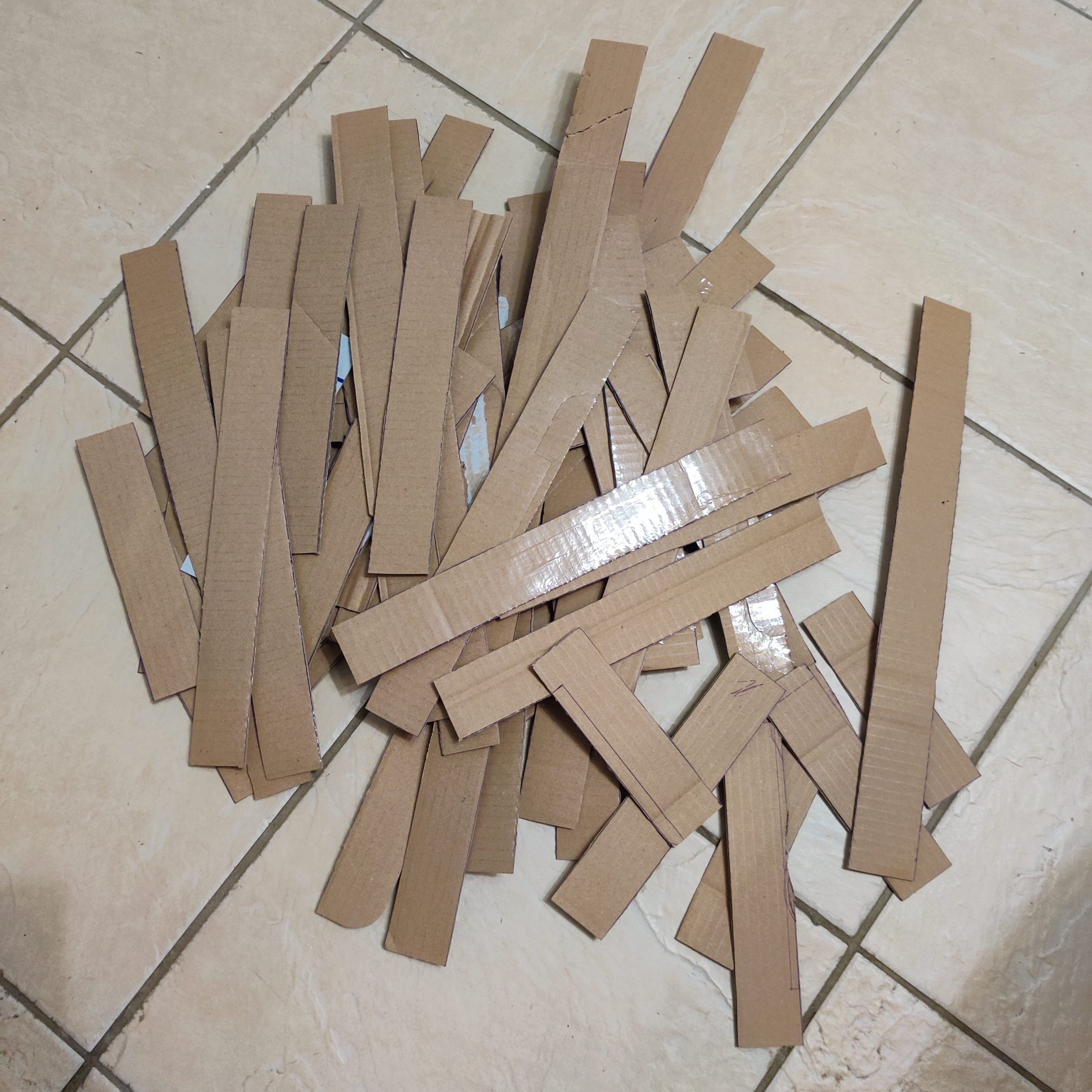 - Puis trace et découpe des bandes de 4 cm avec les chutes de carton.
