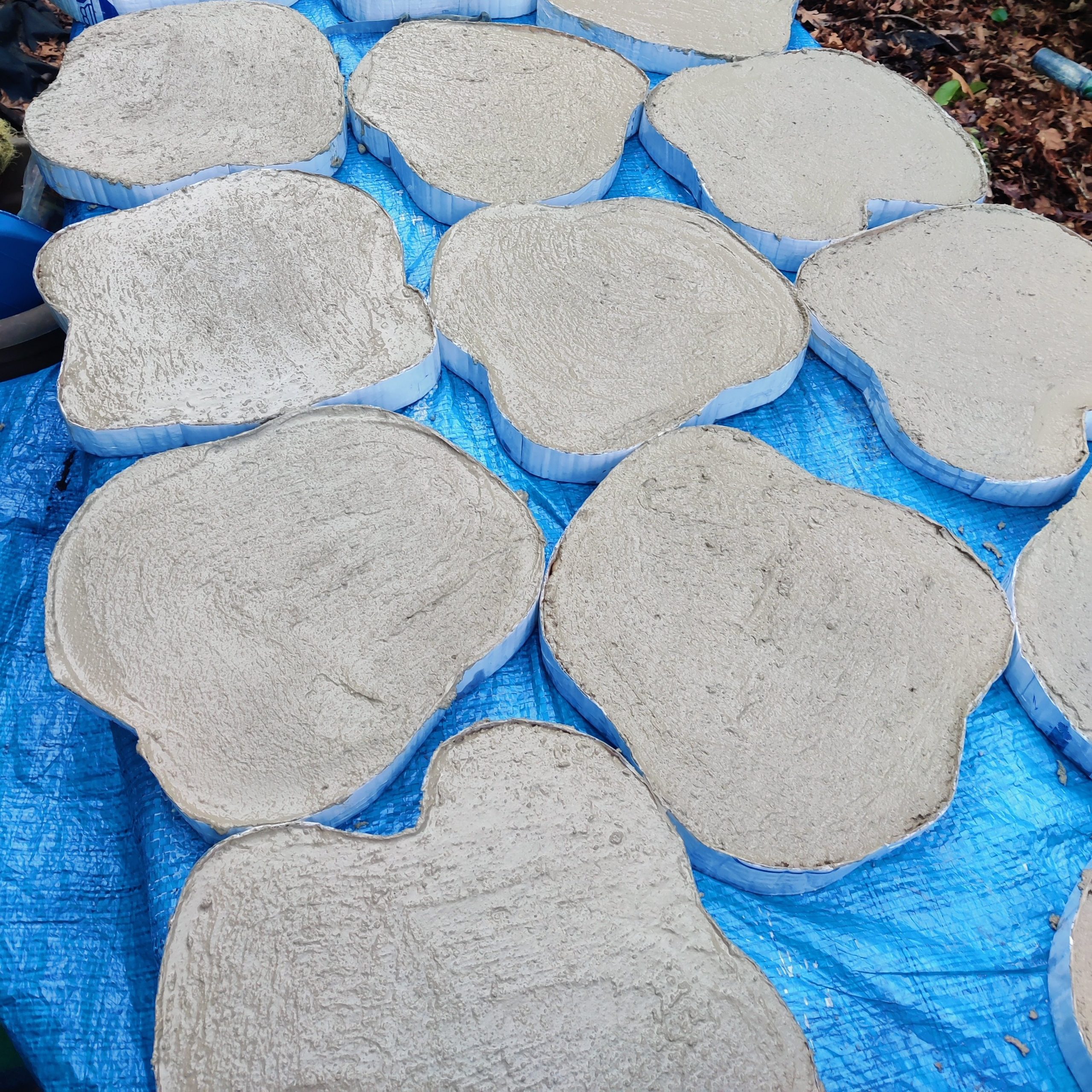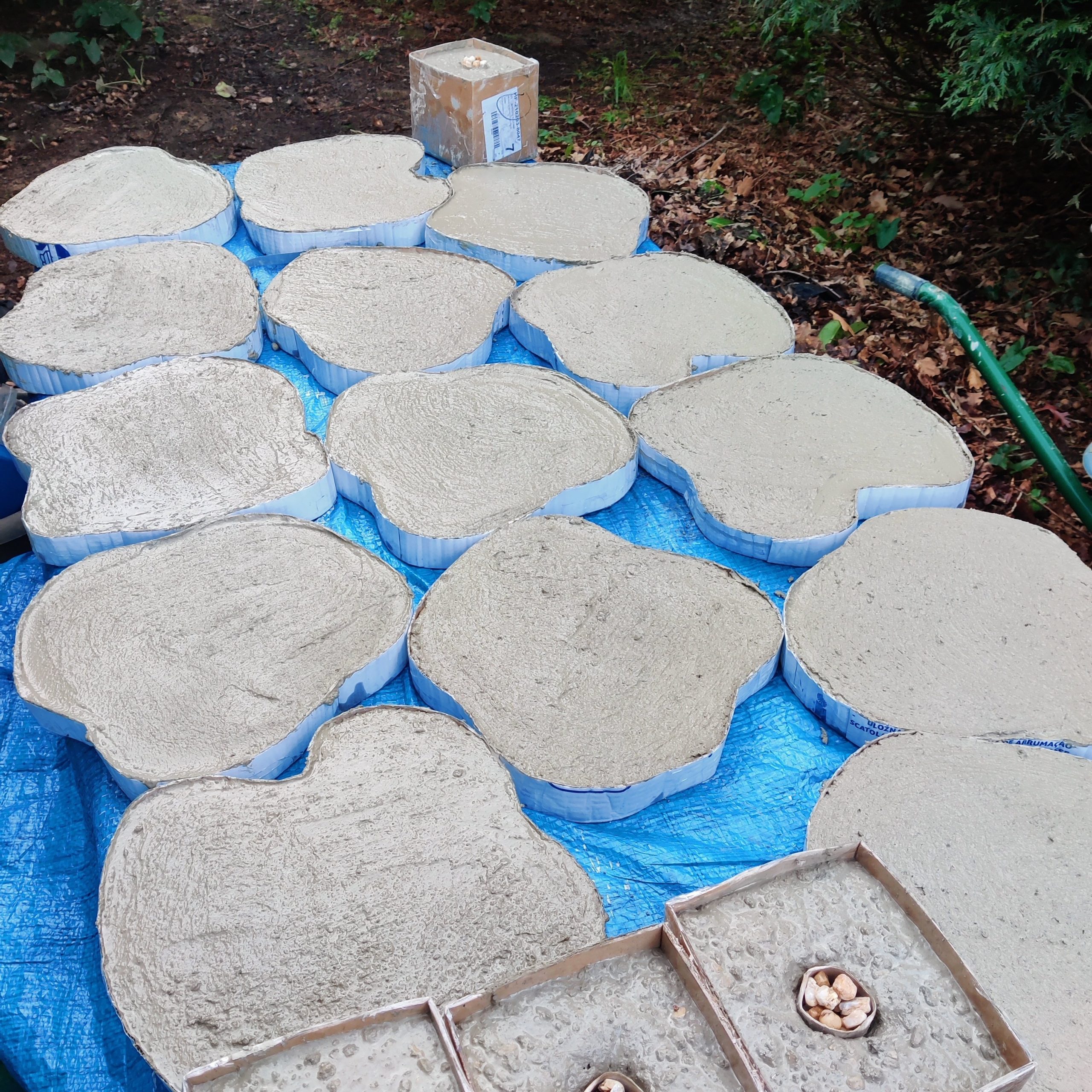 J’ai toujours été freiné par le coût des pas japonais, à l’unité le prix n’est pas excessif, mais lorsque tu souhaites faire une allée, ça grimpe très vite ! J’ai donc eu l’idée de les fabriquer en coulant du béton dans des moules en carton !