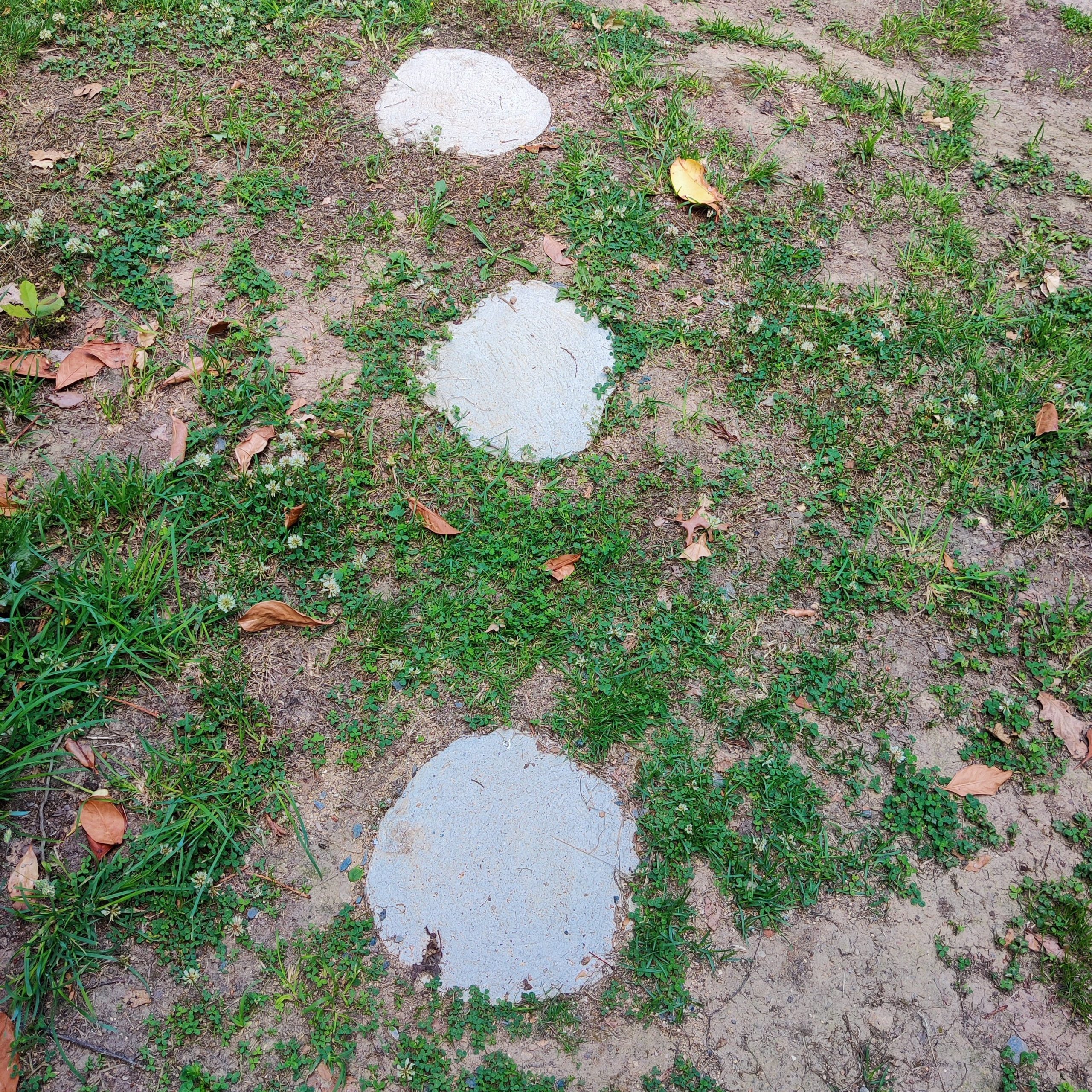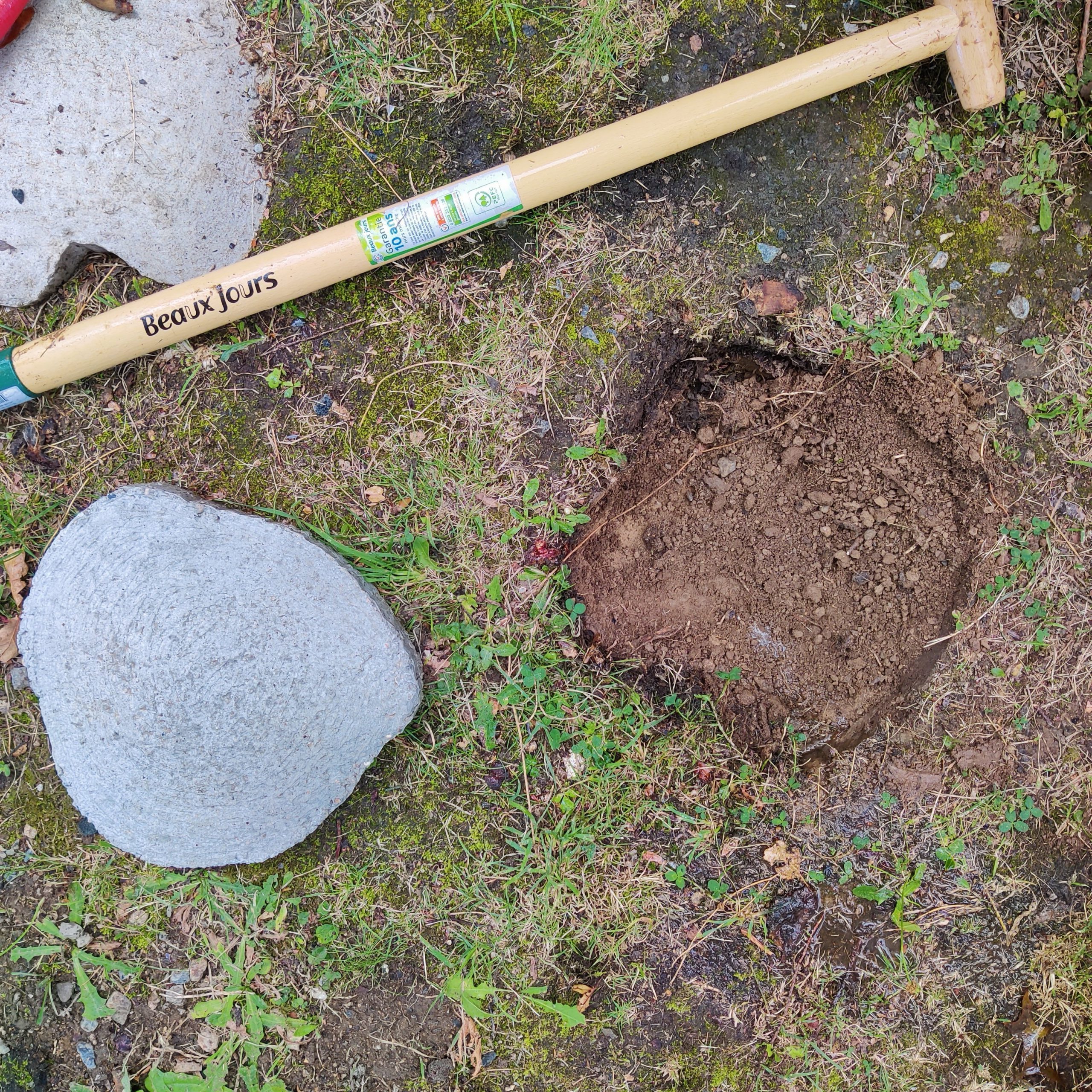 - Ensuite, creuse ton sol aux endroits souhaités avec une profondeur de 4 cm en plus de l’épaisseur de ton pas. (par exemple : mon pas fait 4 cm d’épaisseur, donc je vais creuser des trous de 8 cm d’épaisseur)