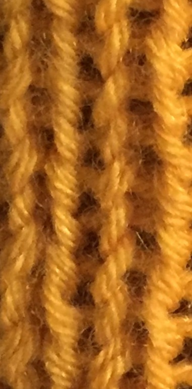 - Puis continue normalement les mailles suivantes : 2 mailles envers, 2 mailles endroits, 2 mailles envers.