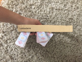 Puis glisse tes trois tas d’étiquettes sur tes trois rubans.