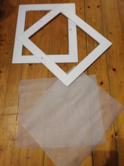 - Découpe deux morceaux de papier cuisson et colle-les sur les ouvertures de tes côtés (gauche et droit).