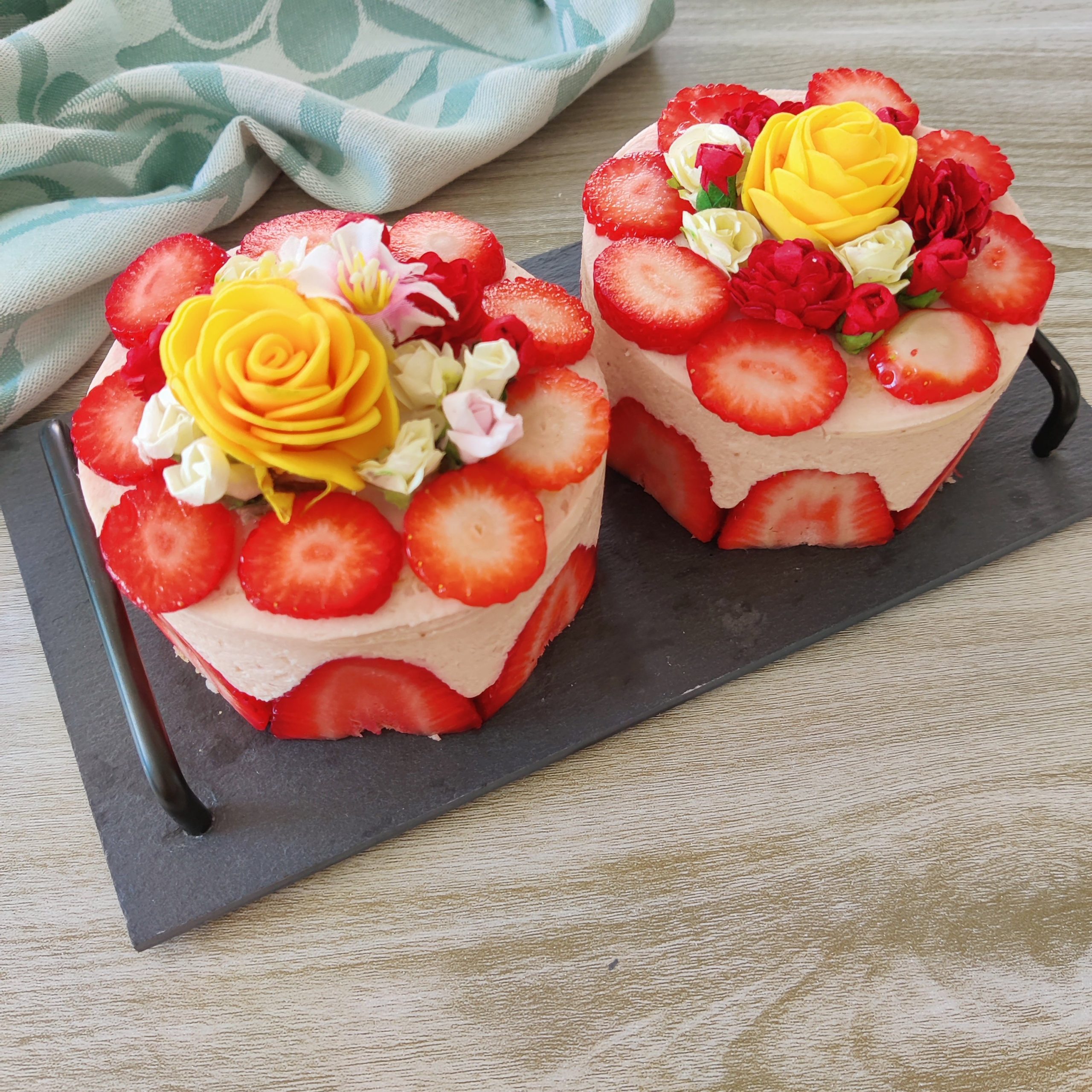 Je suis partie sur des minis fraisiers (de 10 cm de diamètre), mais les quantités peuvent facilement convenir pour un moule de 20 cm de diamètre.