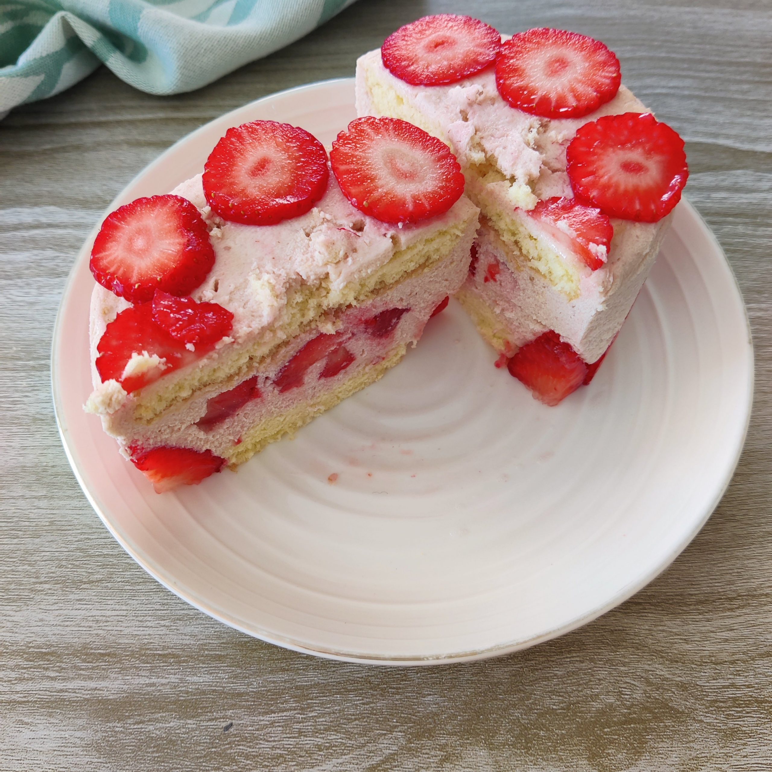- Ajoute des cubes de fraise au centre, puis recouvre-les avec une nouvelle couche de crème.