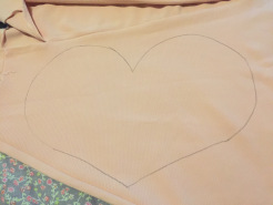 - Reporte le motif sur le tissu et à l’aide de ton feutre, dessine les contours du cœur.