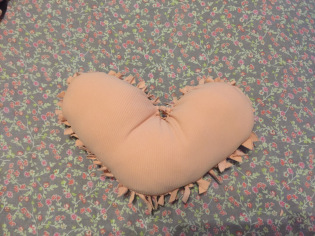 - Une fois le petit coussin garni, continue de nouer les lanières pour le fermer.