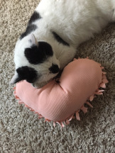 J’ai opté pour un petit modèle pour finir un morceau de ouate et cela a fait un heureux, car Pépito ne quitte plus son petit coussin !