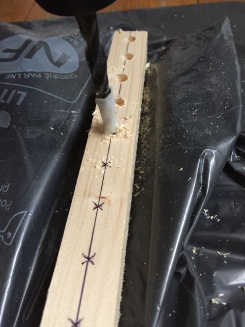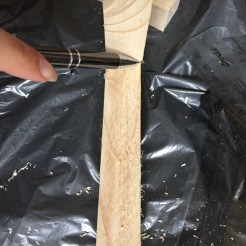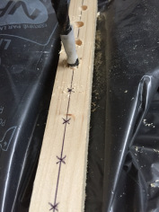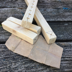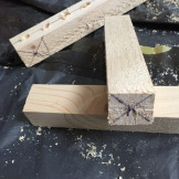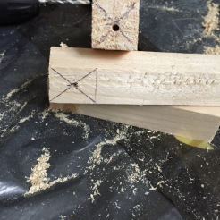 - Sur les petits tasseaux, fait une croix sur chaque extrémité et fait une marque au centre.
