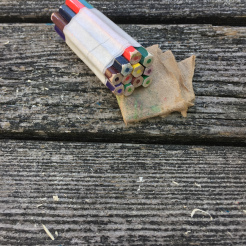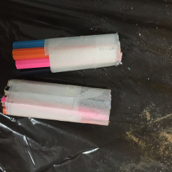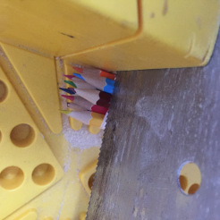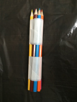 - Sépare tes crayons en deux tas et scotche-les ensembles.