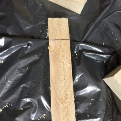 - Scie ton tasseau au niveau de tes mesures afin d’obtenir 4 morceaux (deux de 44 cm et deux de 12 cm).