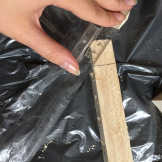 - Prend la mèche la plus large et fait un repère en appliquant un bout de scotch à 1 cm de la pointe.