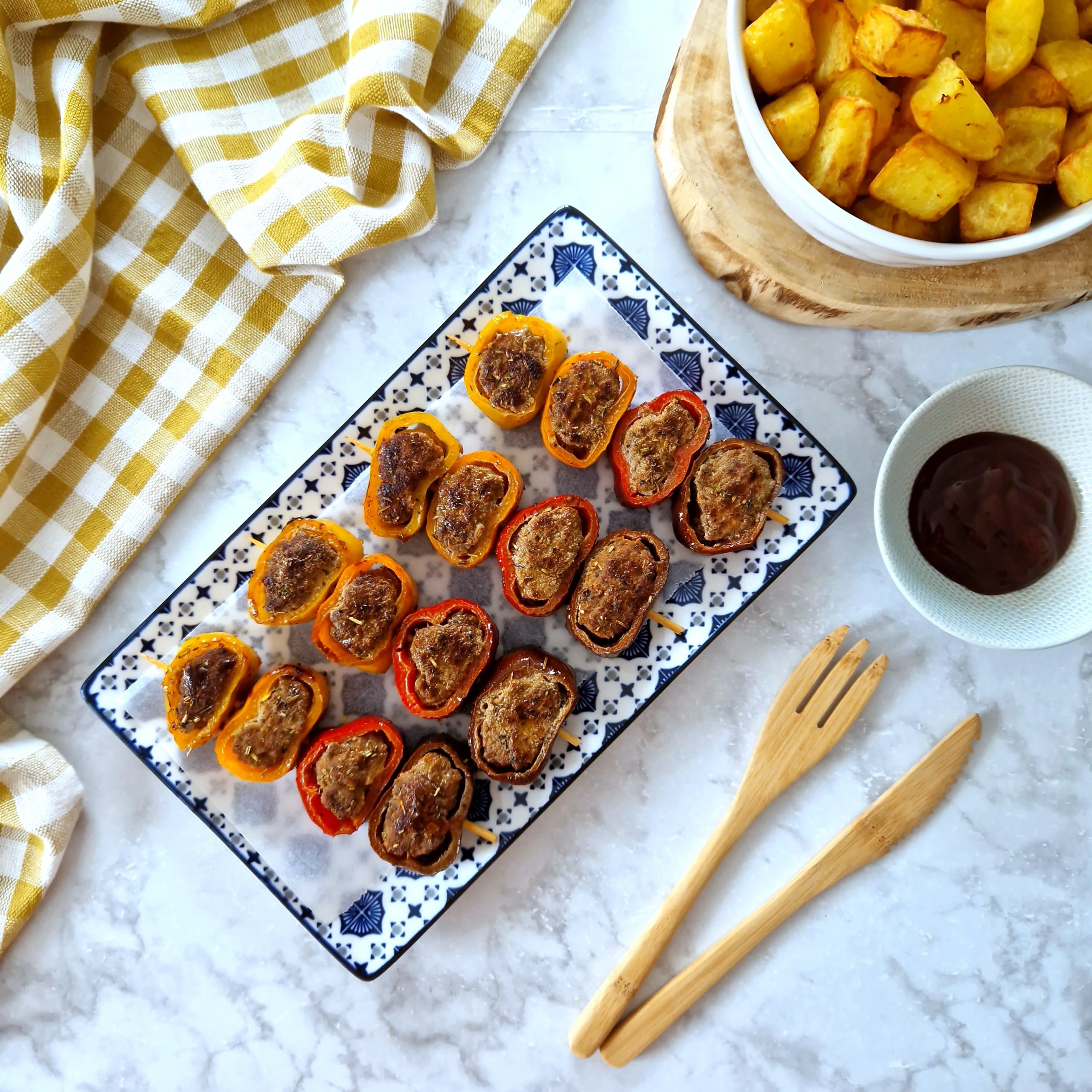 Aujourd’hui je te partage une recette un peu originale de brochette de poivron farci au boeuf. C’est simple et rapide à préparer et ça change des brochettes traditionnelles !