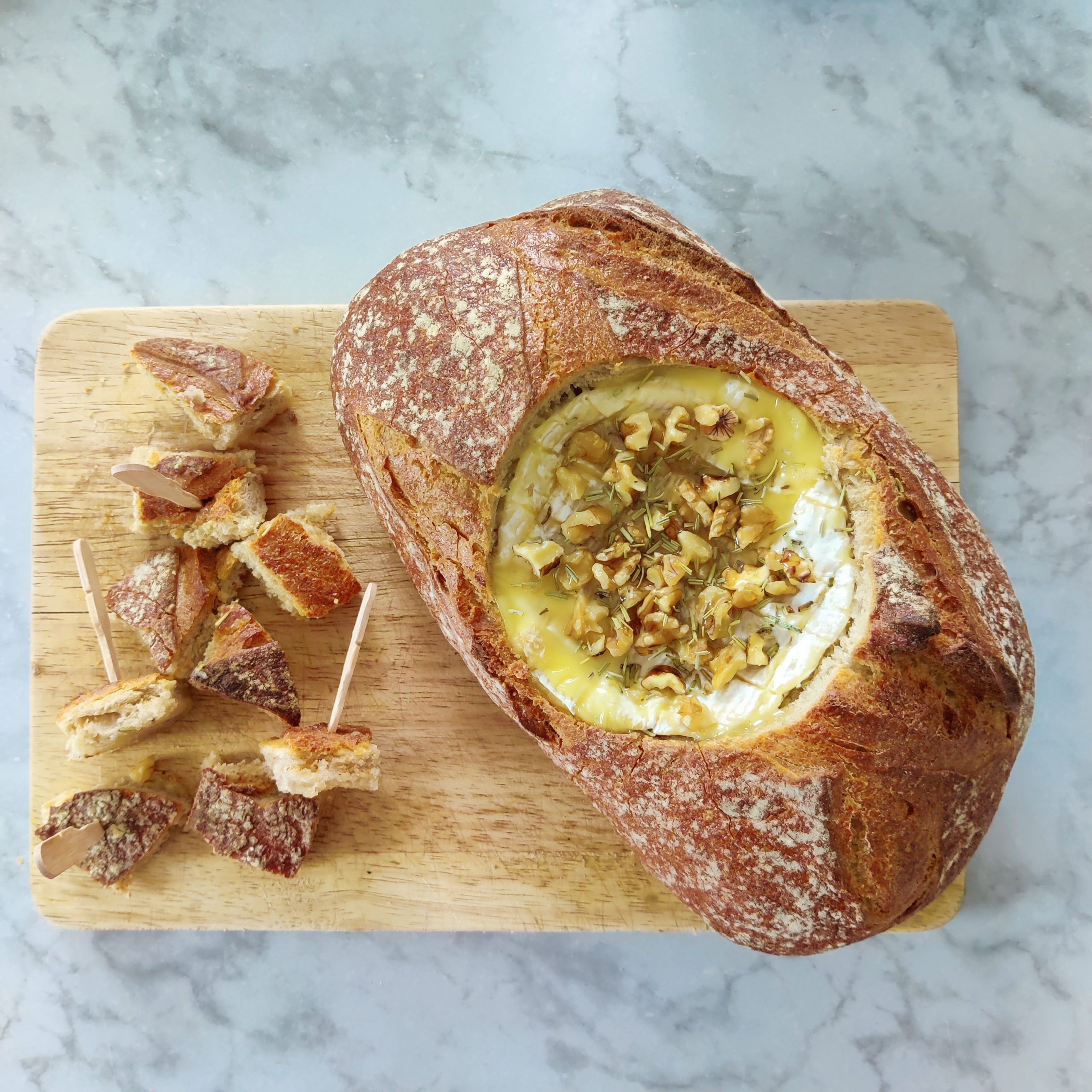 Aujourd’hui je te partage ma recette du délicieux camembert rôti dans son pain 🤤 Avec un peu de miel, du romarin et des éclats de noix c’est une pure merveille 😋
