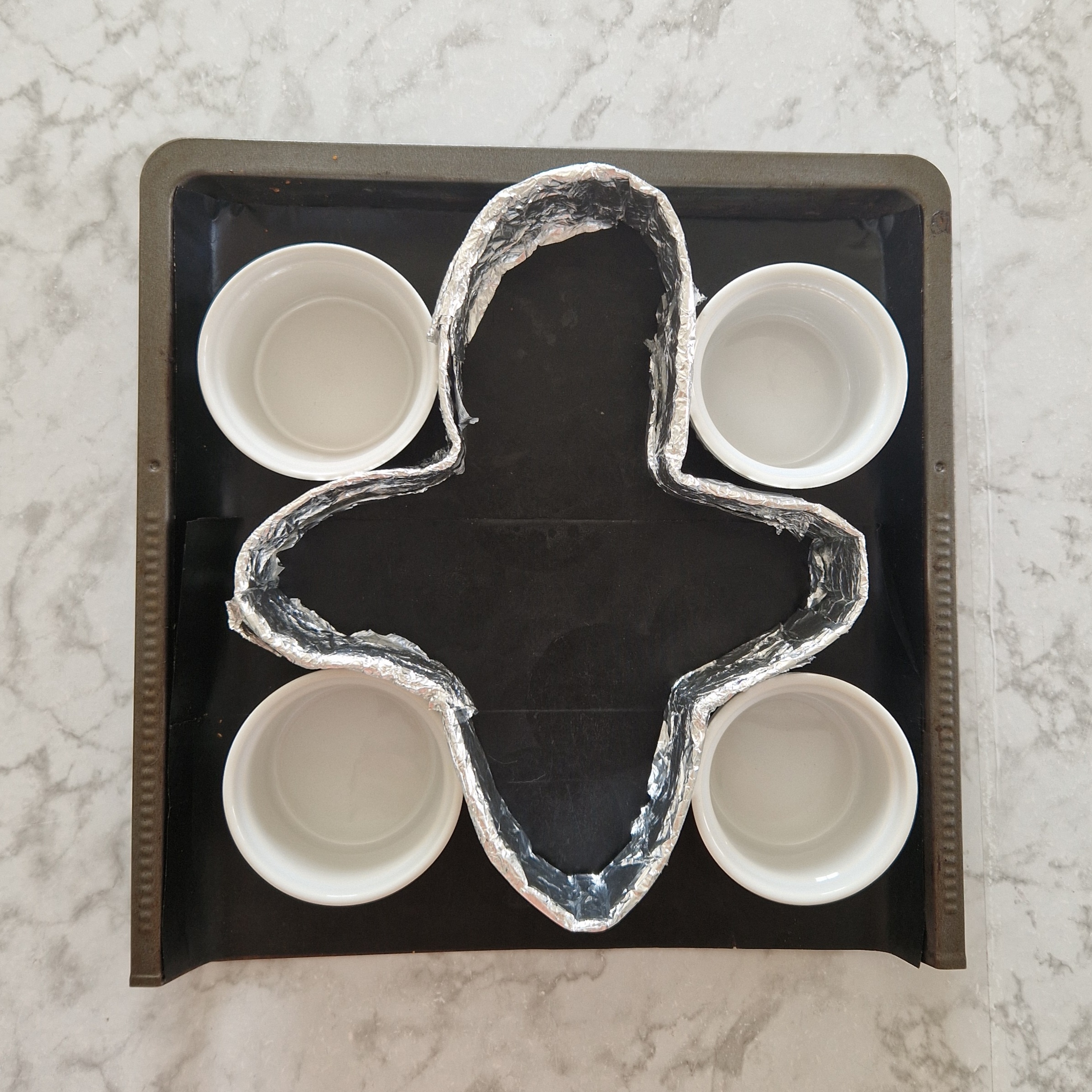 - Donne la forme de « colombe » puis dépose des ramequins sur les côtés pour maintenir la forme en place.