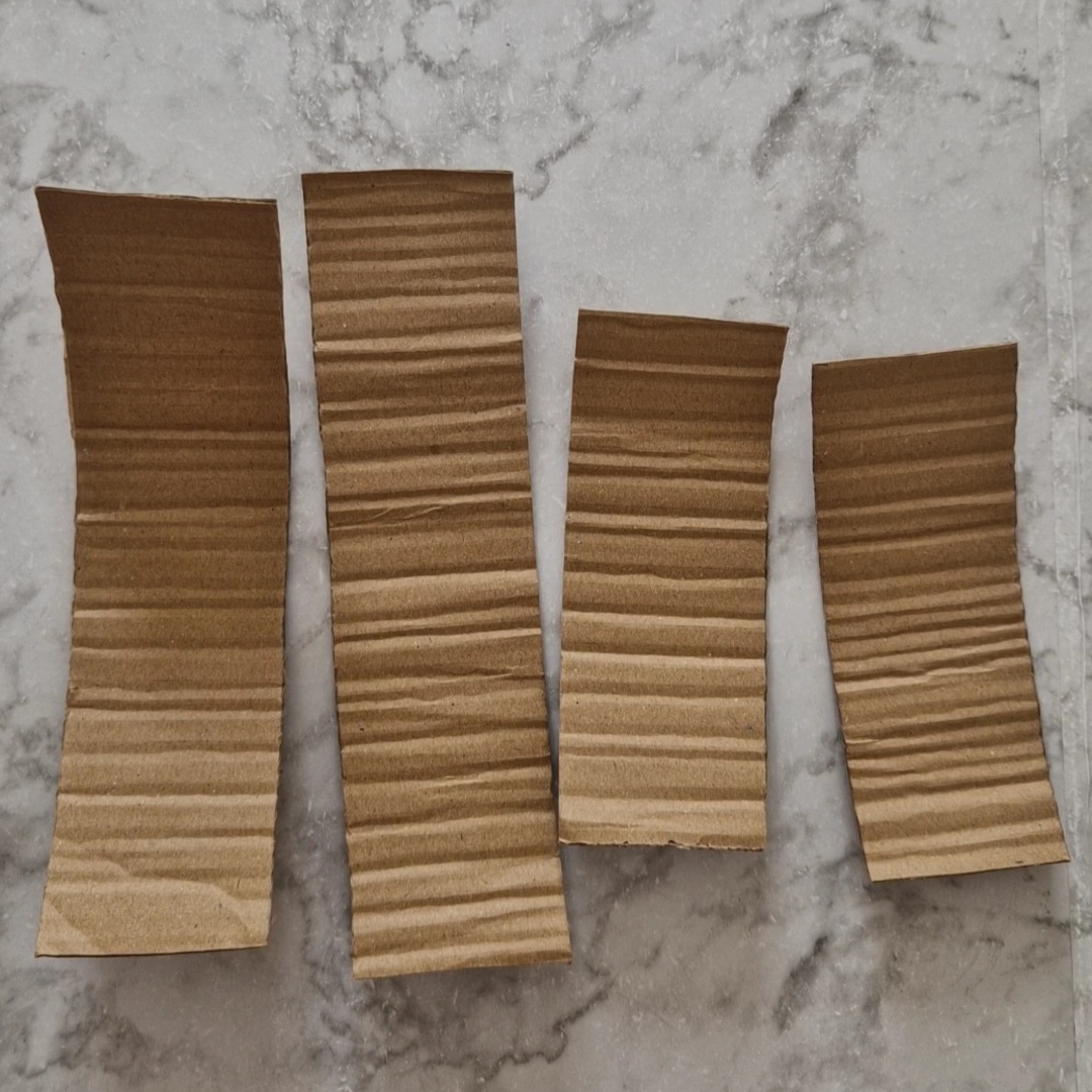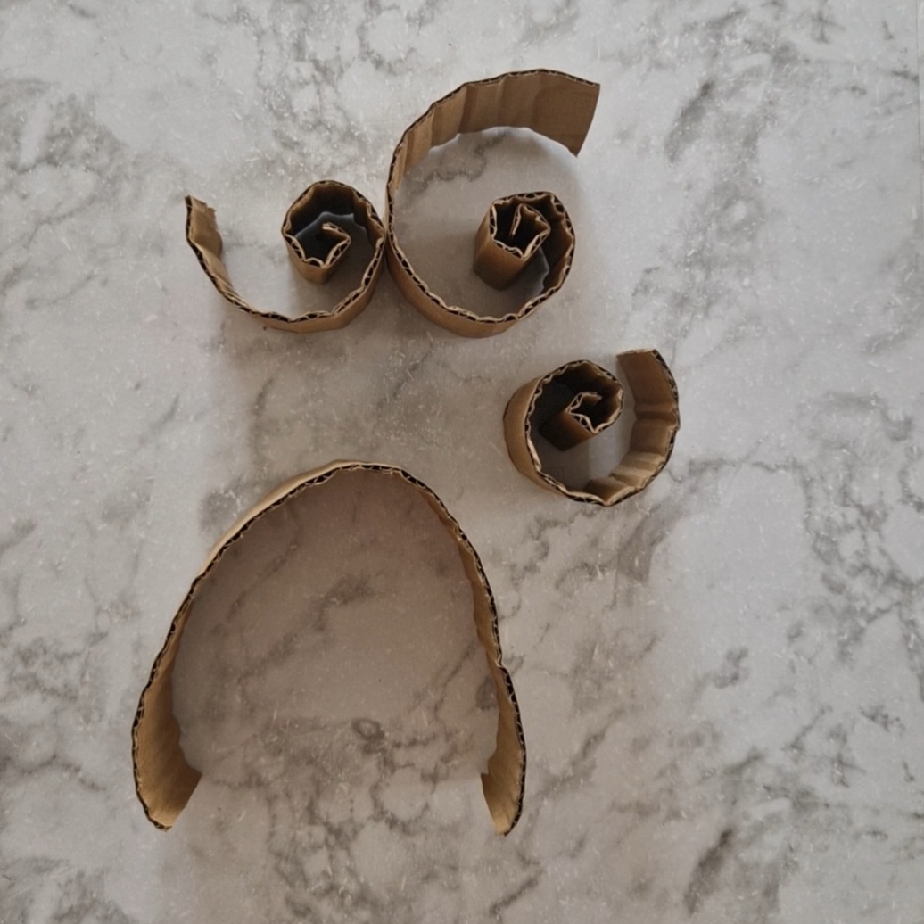 - Enroule les bandes de carton sur elle-même, pour « casser » la raideur du carton.
