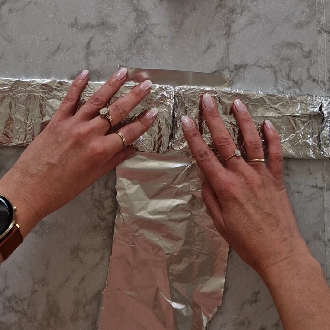 - Recouvre chaque bande de papier aluminium.