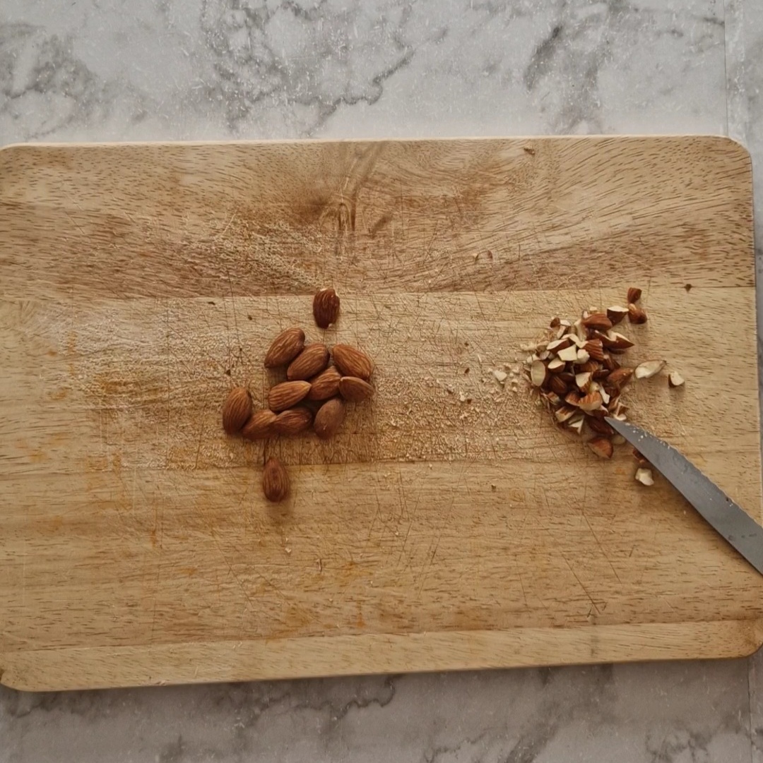 - Pendant ce temps, concasse les amandes, puis réserve-les de côté.