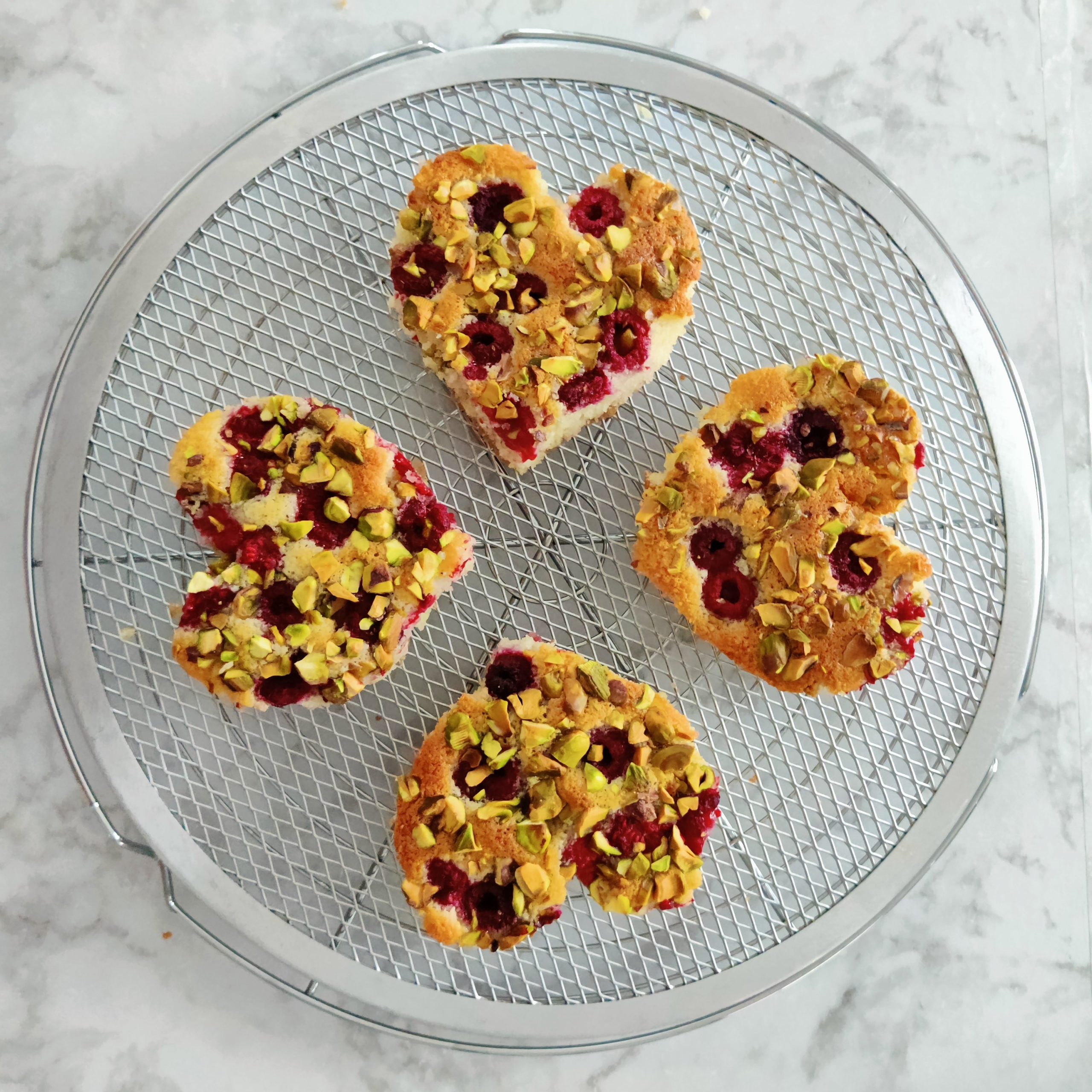 Demain c’est la Saint Valentin, alors pour l’occasion j’ai préparé des délicieux financiers à la pistache et à la framboise.