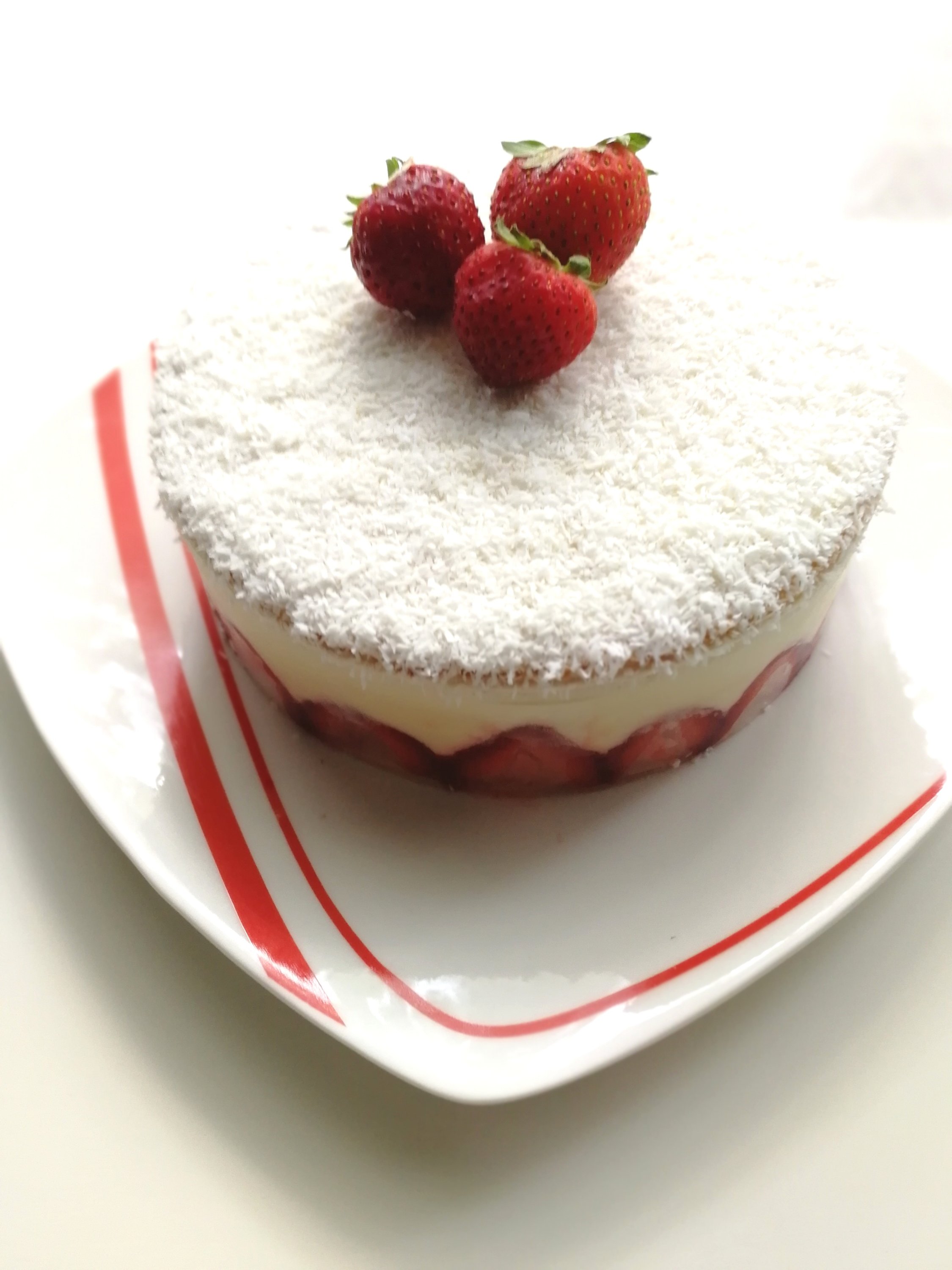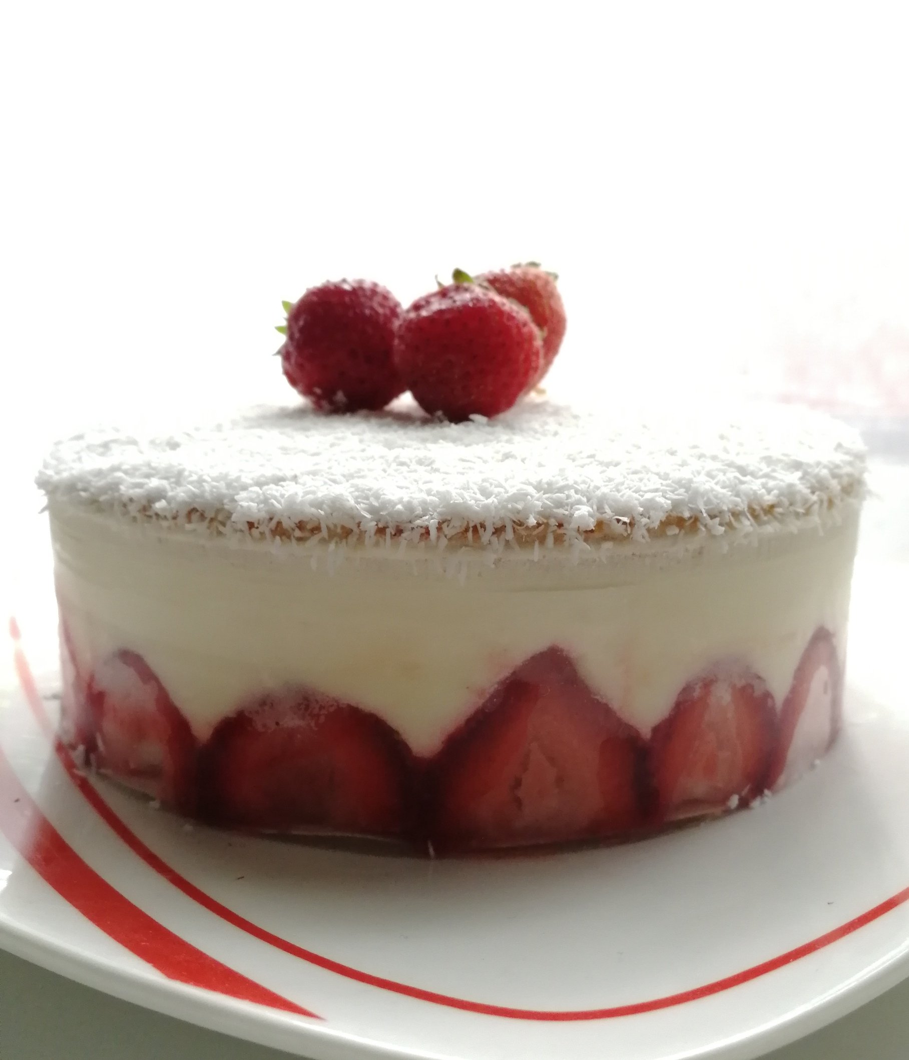 Chéri adore les fraisiers, il m’en a donc réclamé un pour son anniversaire, mais pour varier du traditionnel fraisier que je lui fais tous les ans, j’ai décidé de tester un fraisier à la noix de coco. Dans cette recette la coco est subtile, l’accord avec la fraise est parfaite et les deux ensembles se sublime littéralement.