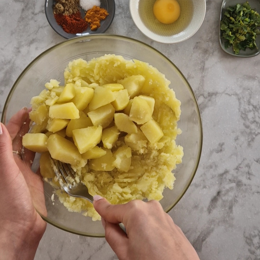- Égoutte les pommes de terre, place-les dans un saladier, puis écrase-les en purée.