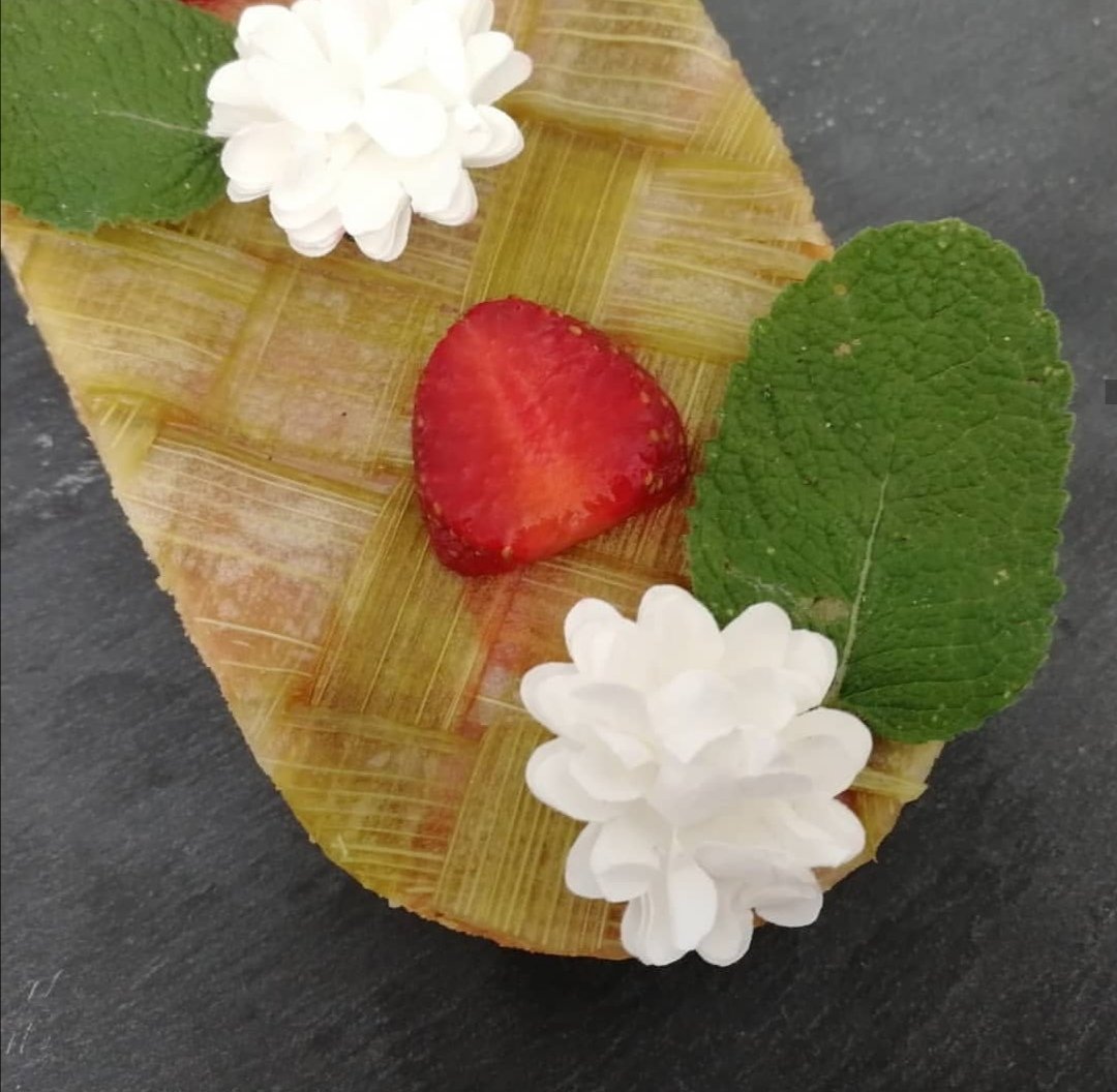 Aujourd’hui je te partage ma recette de tarte fraise et rhubarbe. Je te montre comment je tisse la rhubarbe pour faire ce joli aspect tressé.